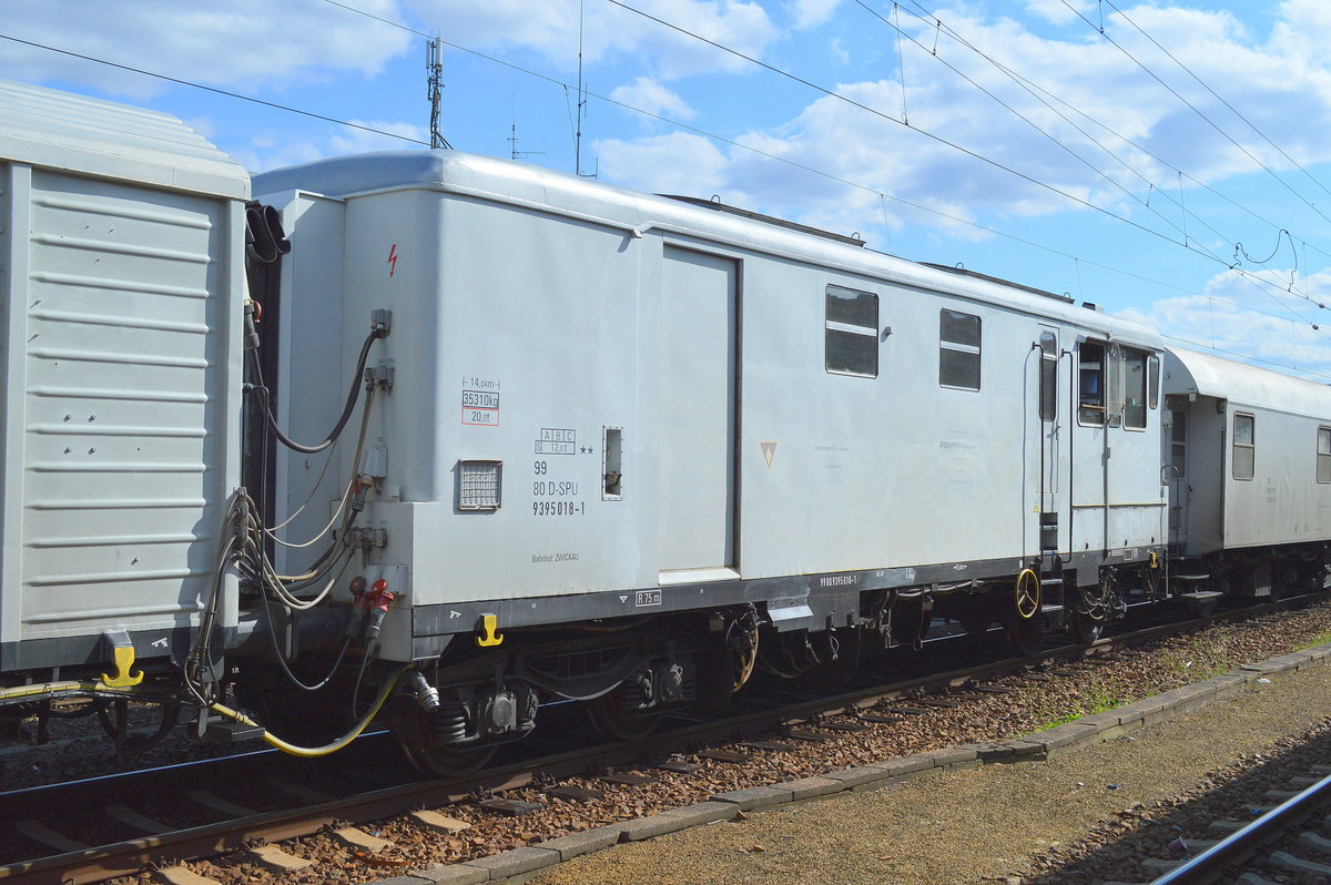Unkrautspritzzug der Fa. SPIESS-URANIA CHEMICALS GMBH mit dem Bahndienstwagen (Kesselwagen) mit der Nr. 99 80 D-SPU 9395 013-2 Ladegut: Brauchwasser am 17.07.17 Bf. Berlin-Lichteberg.