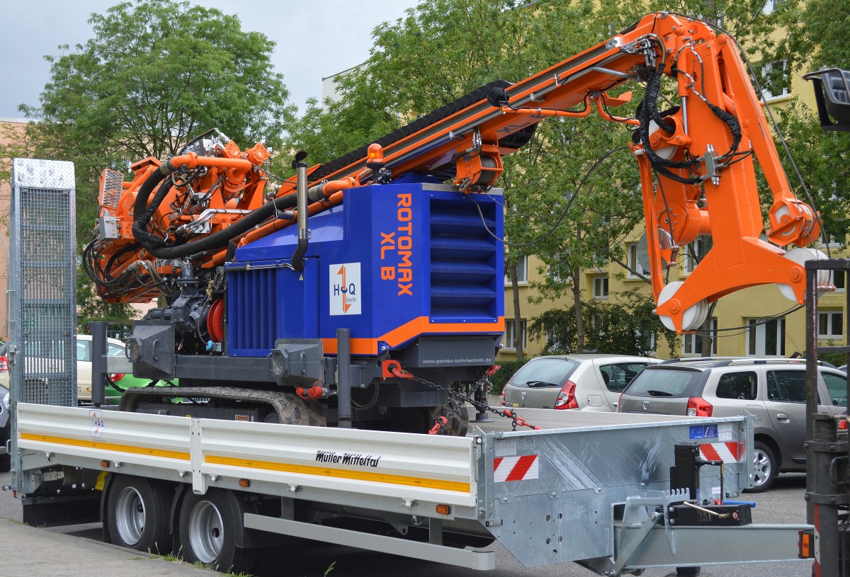 Ein Bohsystem bohrt bei laufendem Betrieb direkt unterhalb der Bahntrasse am S-Bhf Berlin-Ostkreuz, Typ + Hersteller? der Fa. NEIDHARDT GRUNDBAU im Sommer 2008