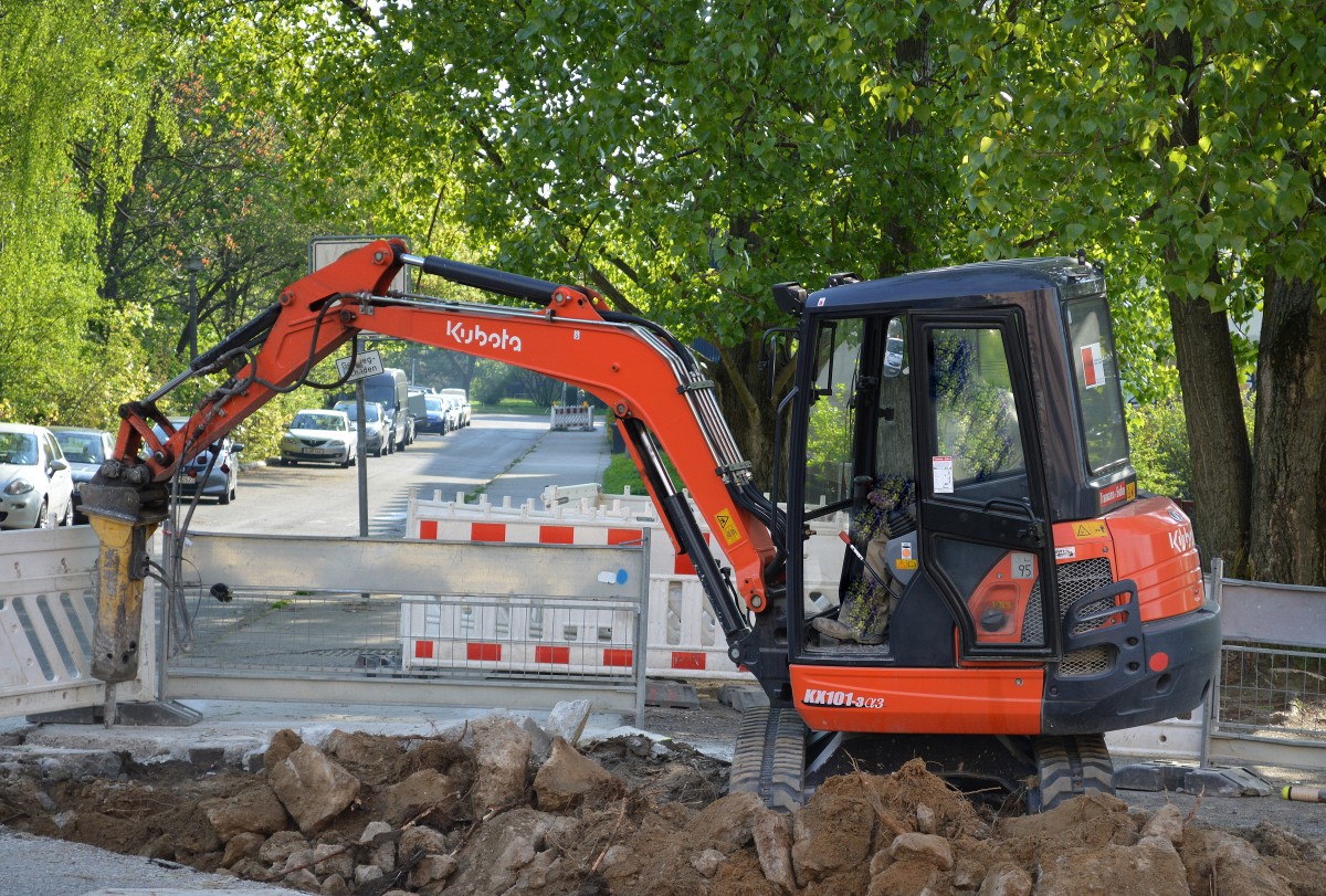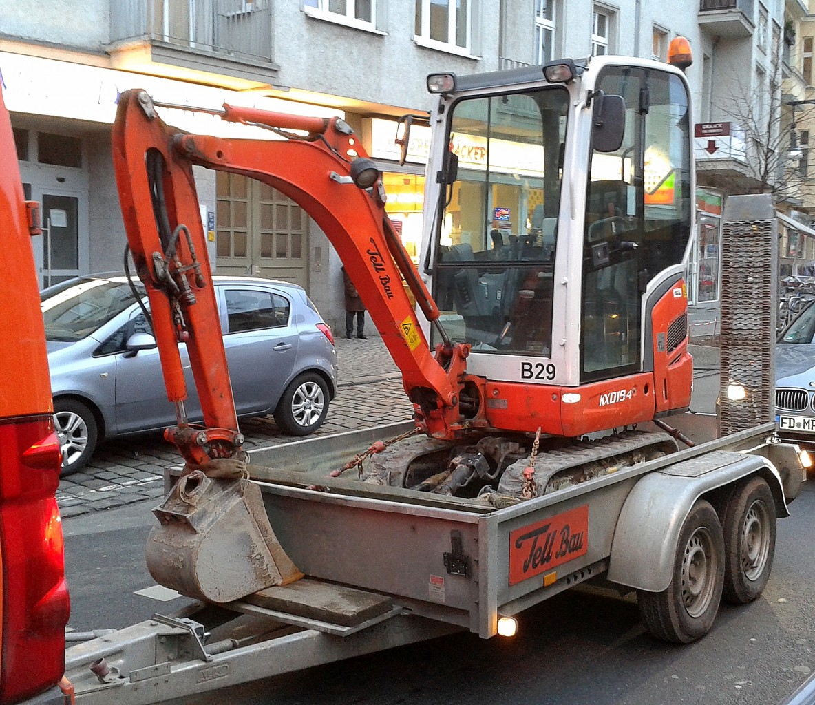 Ein Reigen von verschiedenen Baumaschinen Großbaustelle Berlin Ostkreuz, fie Fa. hentsche mit einem Minikompaktbagger KUBOTA KX080-30 und einem VOLVO L70F Radlader und die Fa. DETRAHIMUS mit einem NEW HOLLAND W 60 TC Radlader, 12.03.15