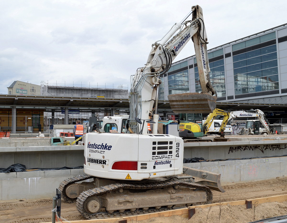 Bei Abrissarbeiten in Berlin häufig im Einsatz, der LIEBHERR 954 mit Long Front Aufsatz mit Greifzange der Entsorgungsfa. RWG I am 17.02.16 Berlin-Heinersdorf.