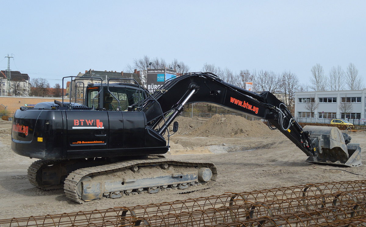 VOLVO? LIEBHERR? ich vermag diesen Raupenbagger der Entsorgungsfa. RWG I beim Abriss eines Plattenbaus nicht genau zu bestimmen, 17.02.16 Berlin-Heinersdorf.