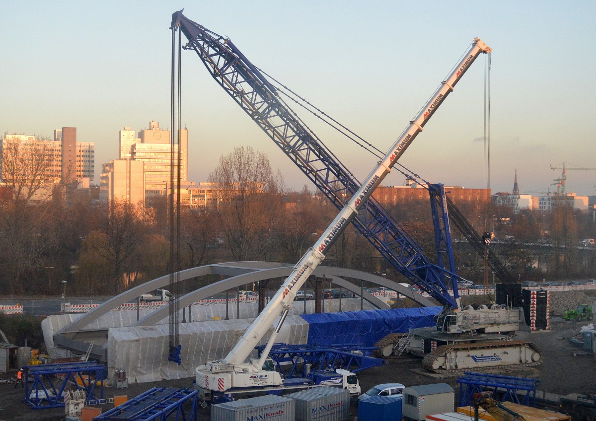 Dieser DEMAG CC 2800 Raupenkran (max. Traglast 600t) der Fa. DFA Industriemontage GmbH ist jetzt schon einige Monate auf der Großbaustelle Berlin Ostkreuz im Einsatz, 06.10.14
