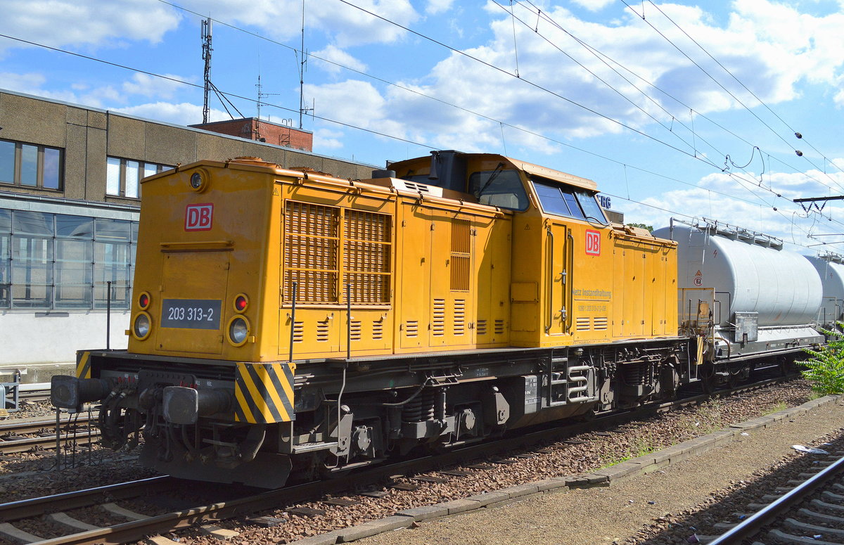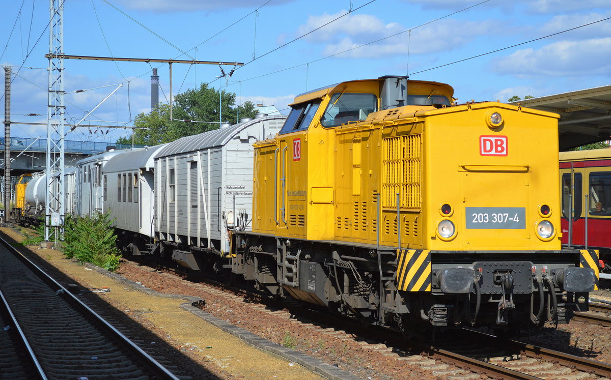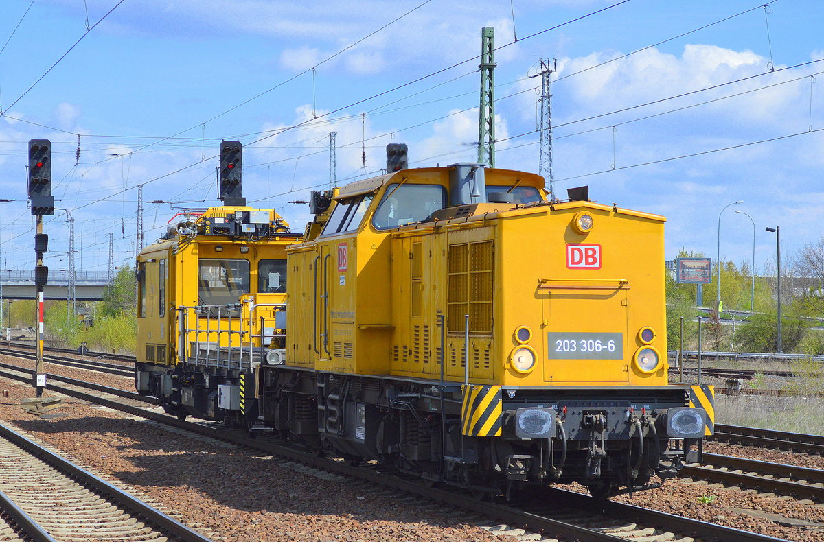 DB Netz mit 203 302-5 mit 711 122-2 am Haken am 04.12.17 Bf. Flughafen Berlin-Schönefeld.