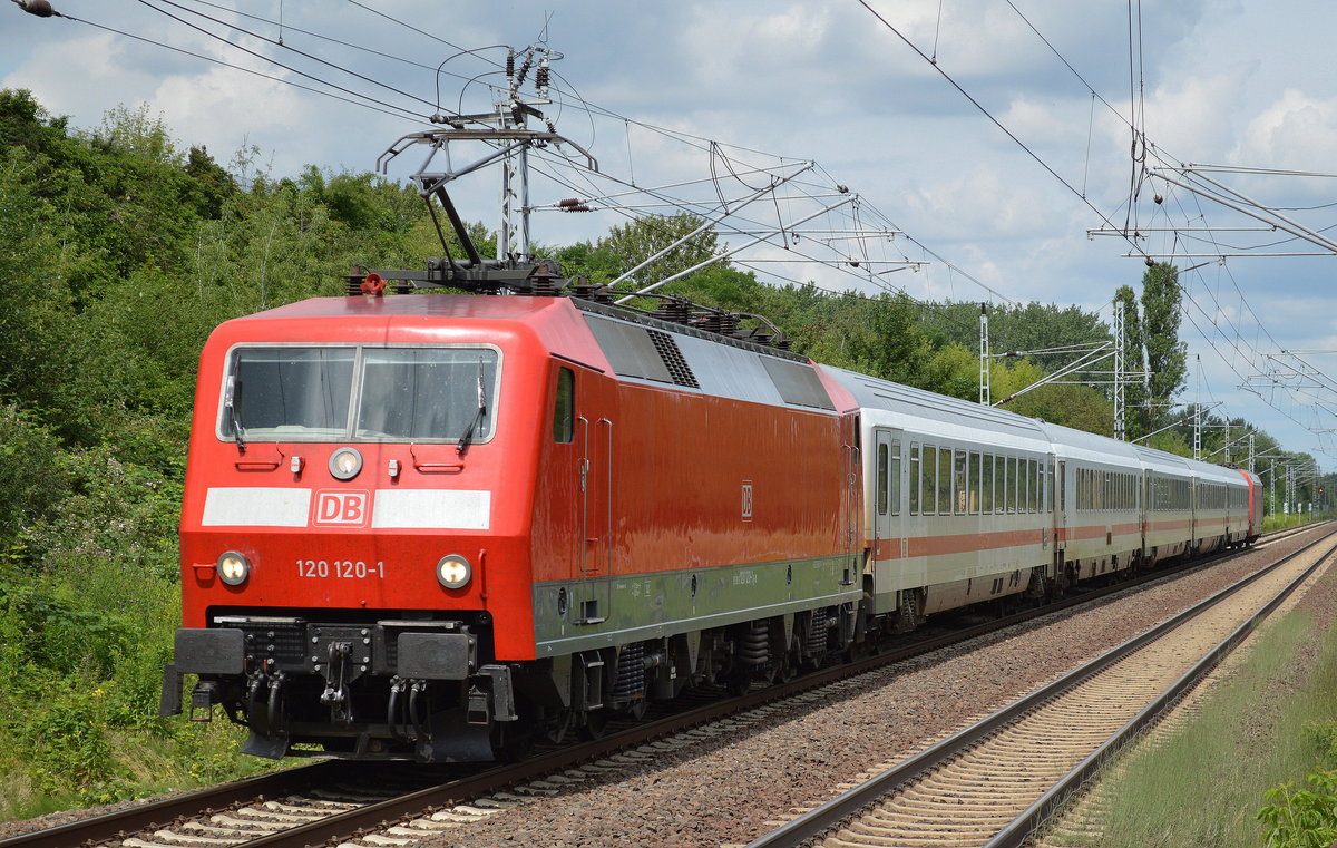 120 120-1 mit IC-Wagengarnitur Richtung Berlin-Gesundbrunnen, 12.02.13 Berlin-Blankenburg.