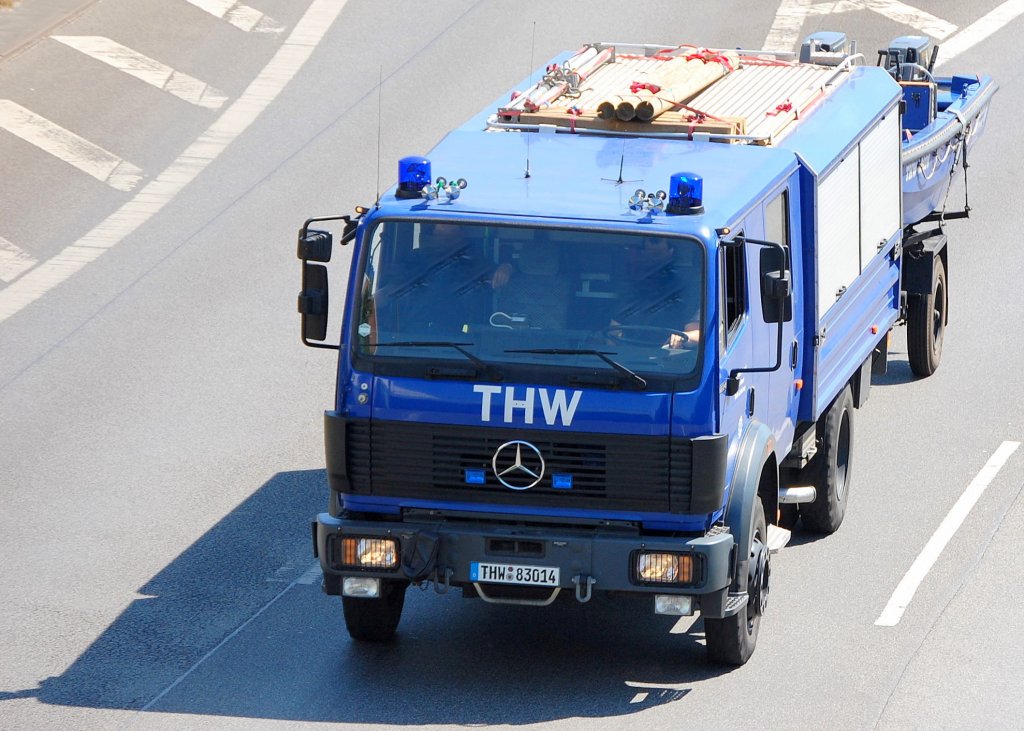 Mehere Ortsverbände des THW in Berlin besitzen noch in ihrem Fuhrpark diese Mannschaftskraftwagen vom Typ MB 508 D, hier am 07.05.15 Berliner Stadtautobahn Höhe Knobelsdorffstr.