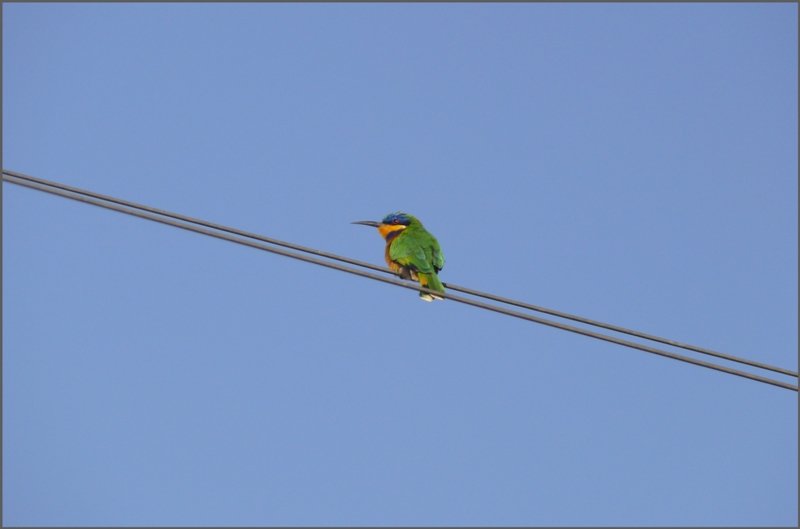 Ein durstiger Vogel hat den tropfenden Wasserhahn entdeckt im Depot Asmara. (01.11.2008)
