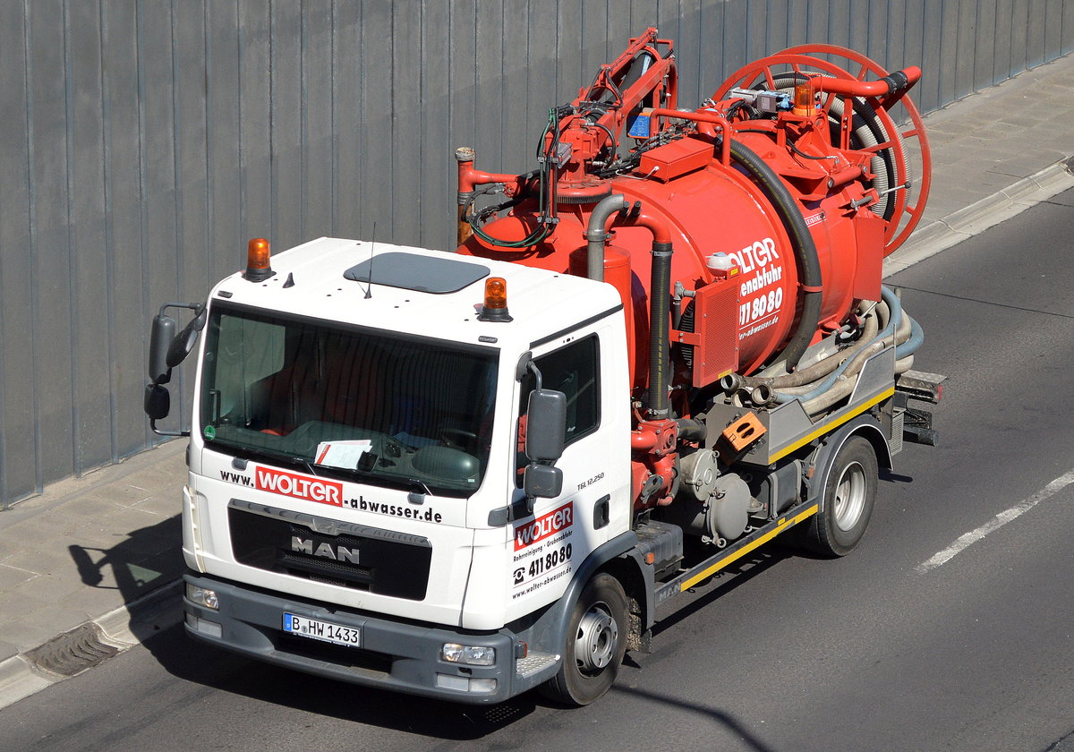 Ein älteres MAN Altwasserentsorgungsfahrzeug der Berliner Wasserbetriebe, 24.04.09 Berliner Stadtautobahn Höhe Knobelsdorffstr.