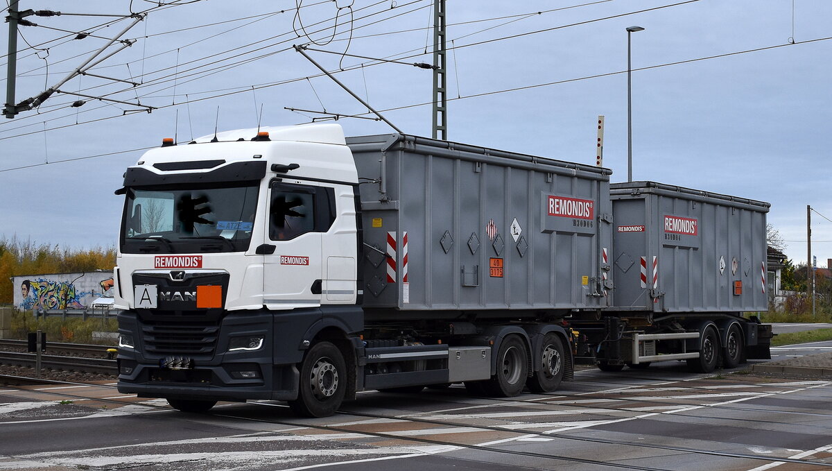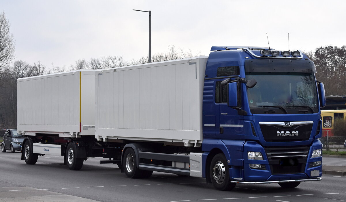 Ein intertessanter Schwertransporter vierließ unbeladen das Berliner Westhafenglände in Begleitung von Polizei und Transportbegleitfahrzeug, eine MAN TGX 41.540 Schwerlastzugmaschine der Sped. w.mayer mit 17 achsigen Schwerlasthänger, 09.01.12 Berlin-Putlitzbrücke.