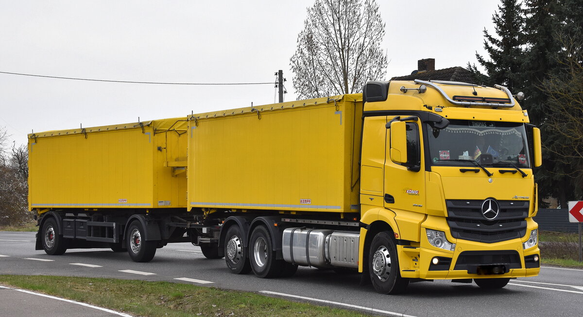 MB NEW ACTROS 2542 Hängerzug der Sped. TLM Transporte & Logistik GmbH (Jurgens) für DHL am 28.01.15 Einfahrt Berlin-Westhafen.