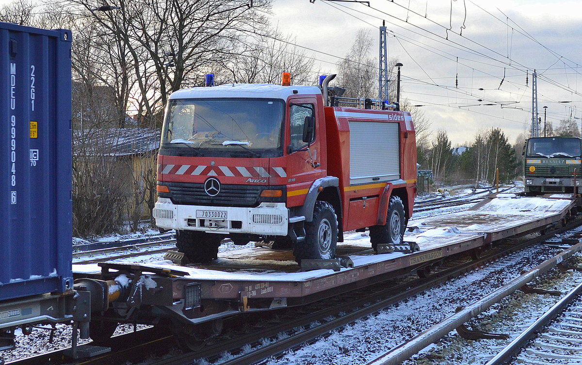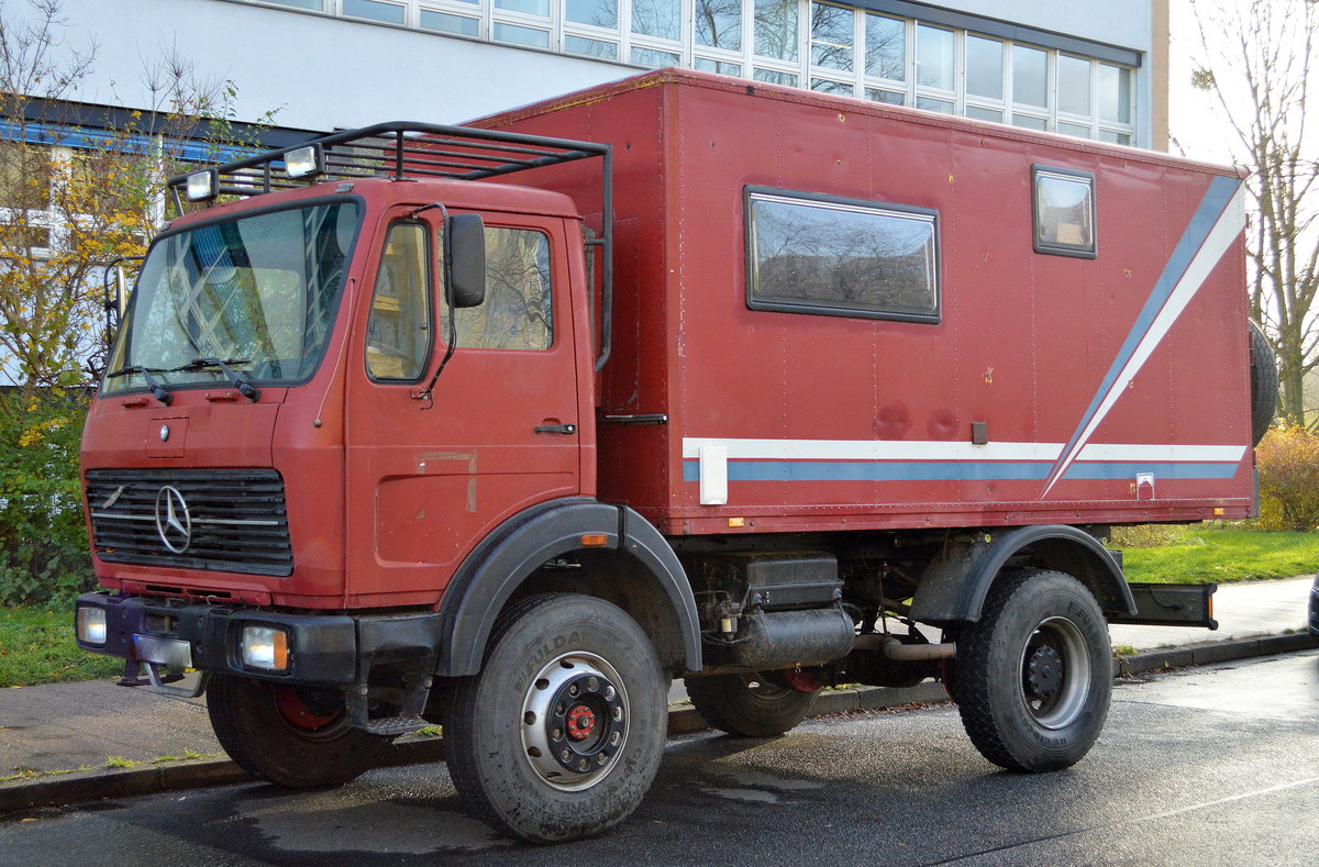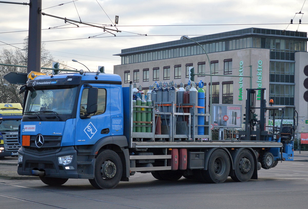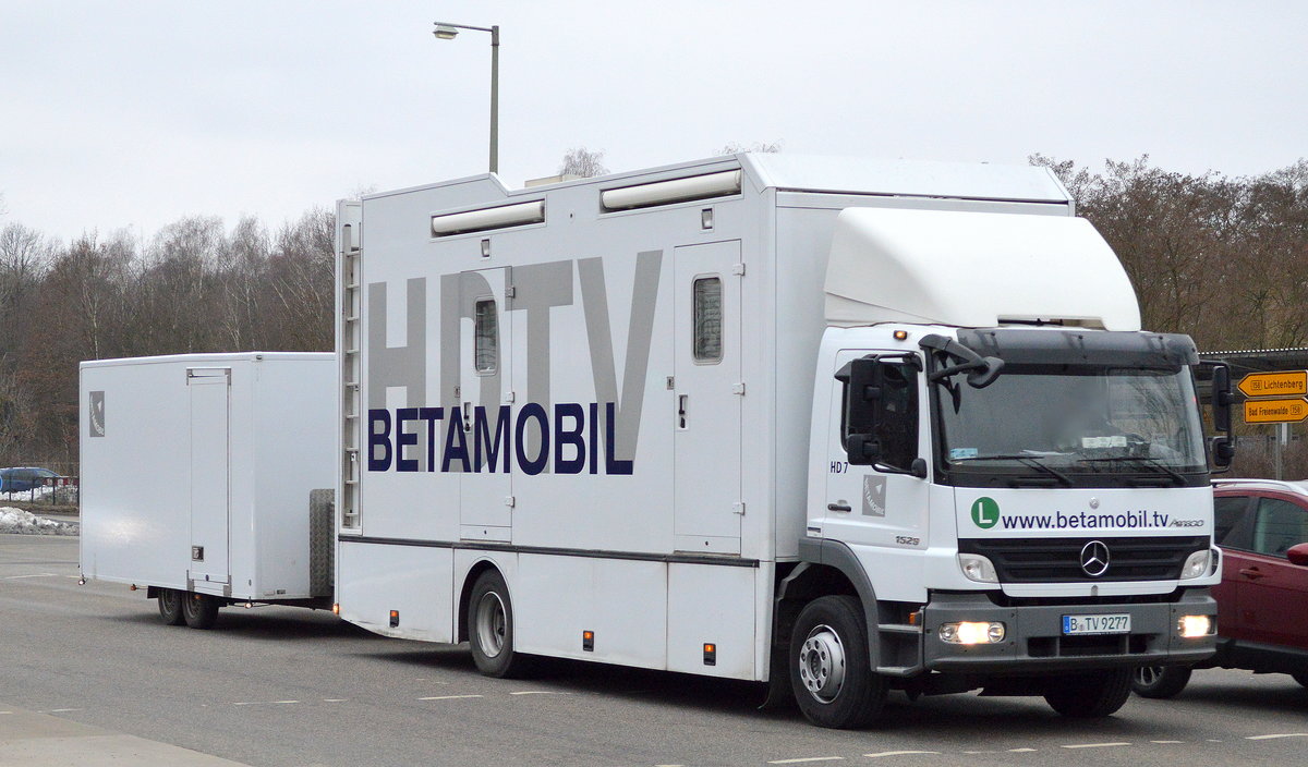 Fa. Fahrleitungsbau?, ein MB Spezialfahrzeug mit Teleskoparbeitsbühne verlegt die TRAM-Hochleitung neu und schiebt einen Hänger mit Kabeltommel direkt vor sich her, 09.10.09 Berlin Schönhauser Allee.