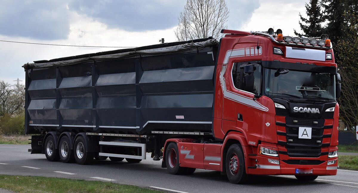 Ein SCANIA Sattelkipper der Fa. CZERNER-TRANSPORTE für GRAF BAUSTOfFE am 26.01.15 Berlin Moabit.
