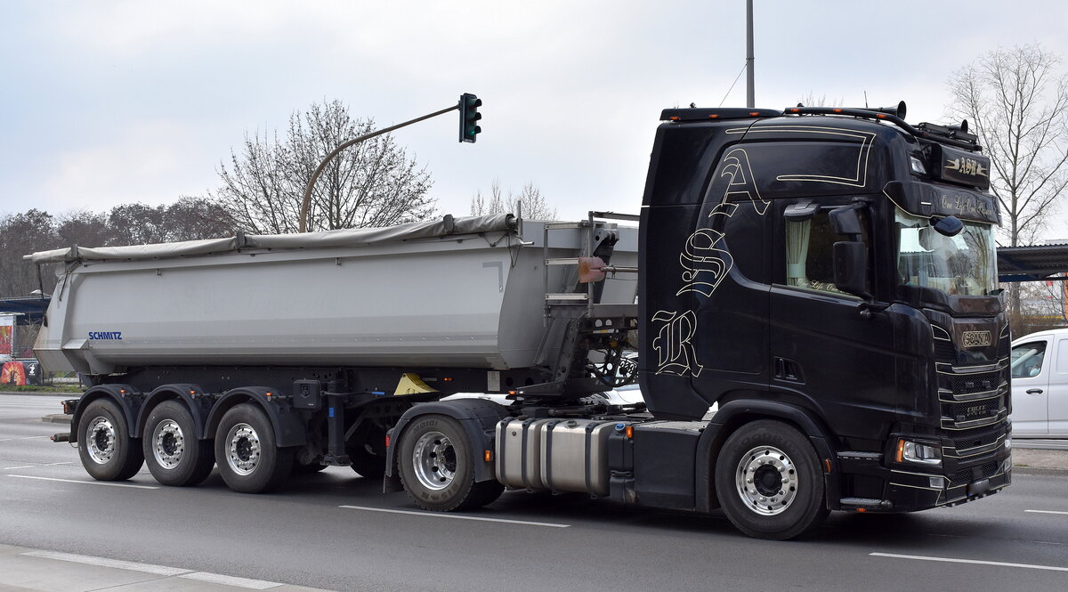 Kolt GmbH mit einem Sattelkipper mit SCANIA R 500 Zugmaschine am 24.09.25 Höhe Bahnübergang Bahnhof Rodleben.