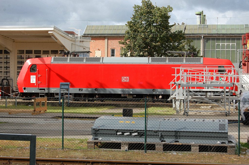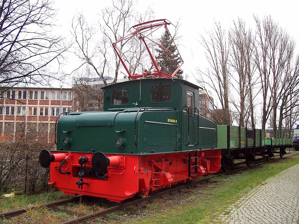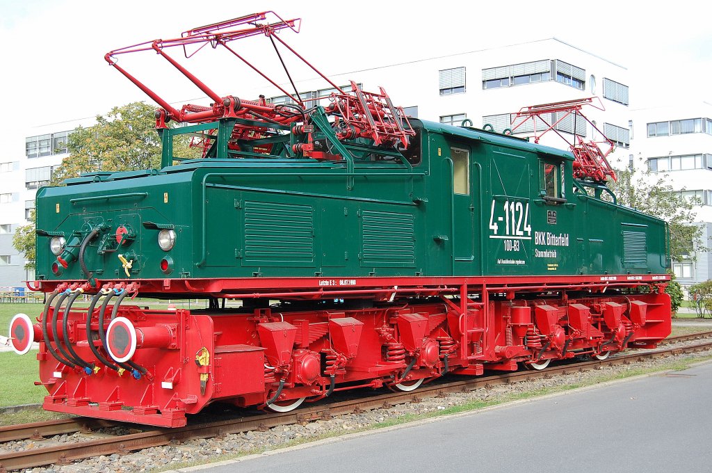 Als Industriedenkmal auf dem Werksgelände des Bombardierwerk Hennigsdorf, die Industrie-E-Lok 4-1124-100-B3 BKK Bitterfeld bei LEW in Hennigsdorf gebaut (Typ EL2/20 Bj.1980) aus dem Braunkohletagebau, 18.09.10 Tag der offenen Tür/Jubiläum 100 Jahre Werksgeschichte in Hennigsdorf.
