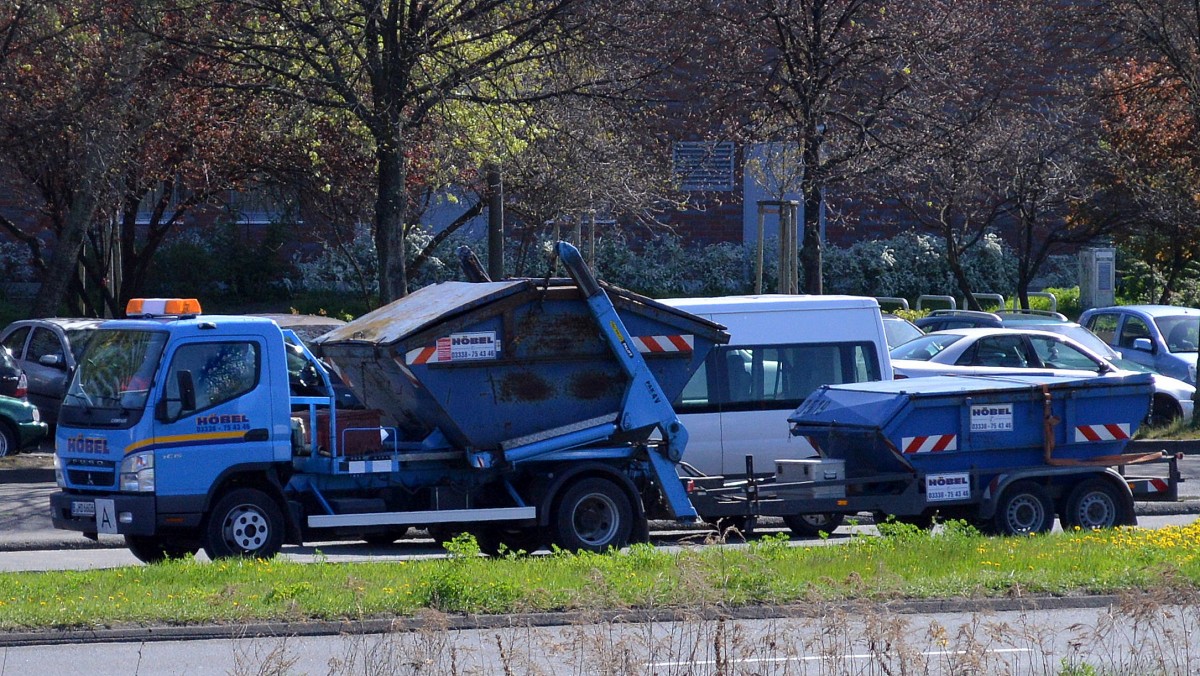 Ein MISTSUBISHI FUSO 6515 CANTER mit Kesselaufbau als Abwasser-Entsorgungsfahrzeug, 15.09.16 Berlin Marzahn.
