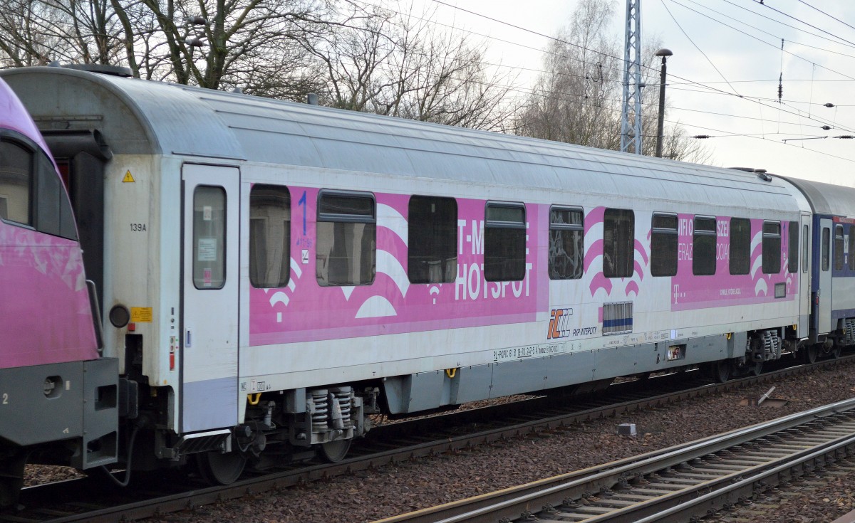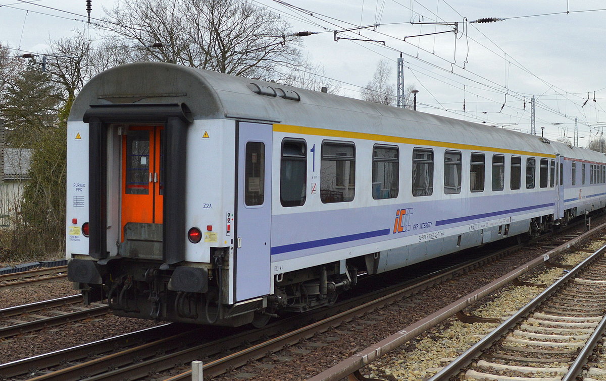 PKP Intercity spółka z o.o. mit IC Personenwagen mit 1. + 2. Klasse mit der Nr. PL-PKPIC 51 51 39-70 004-8 AB9nouz im IC/TLK 85110 "KURT TUCHOLSKIE" am 09.09.25 im Bahnhof Kostrzyn nad Odrą (oben).
