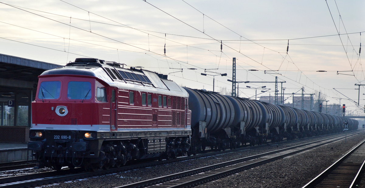 DGT-Ludmilla 232 550-4 (Lugansk Bj.1978) auf Leerfahrt durch Bhf. Flughafen Berlin-Schönefeld, 09.05.11