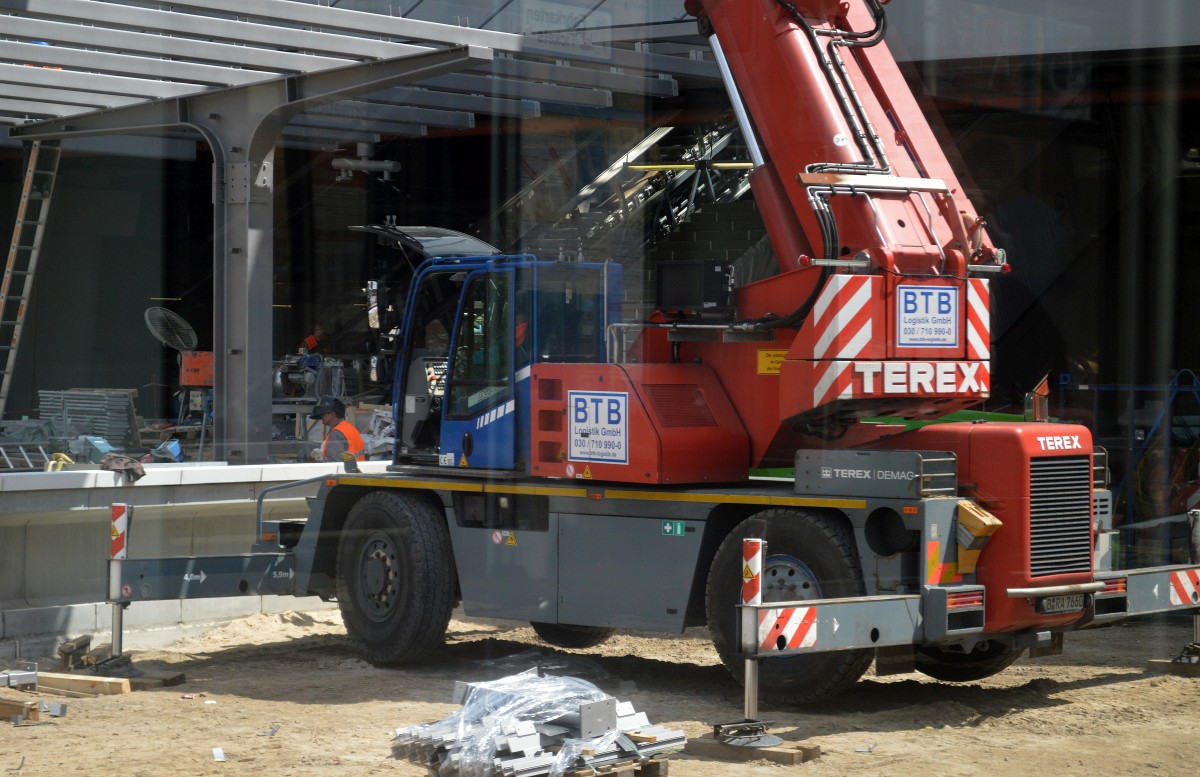 Interessant ist die höhenverstellbare Führerkabine bei dem Mobilbaukran von LIEBHERR Typ MK 63, die dem Kranführer optimale Sicht zum Zielort der transportierten Gegenstände auf der Baustelle gewährleistet, 23.04.12 Berlin-Pankow.