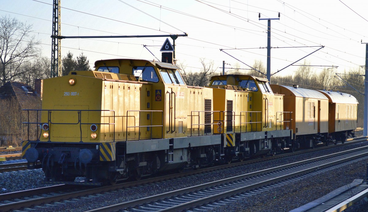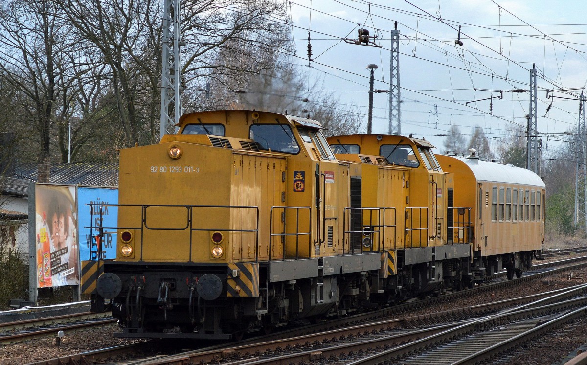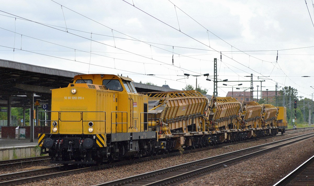 Mehere Privatbauwagen der Fa. DGT in einem Bauzugverband am Ende noch eine Schotterplaniernmaschine im Sommer 2008 Berlin-Pankow.