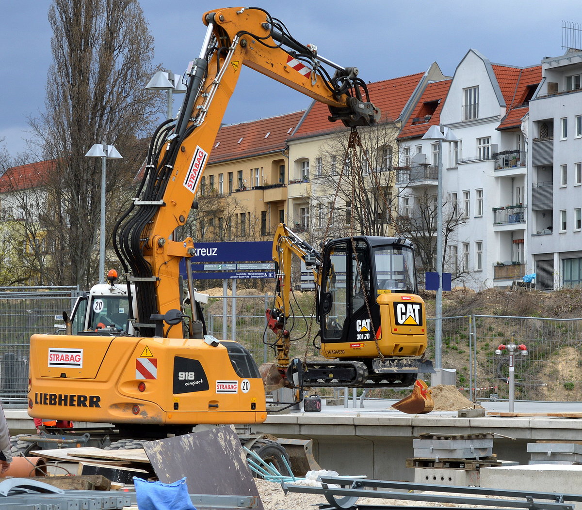 Zusaätzlich zum STRABAG KA-TE System stand noch dieser Firmenwagen, ein VW Caddy der Fa. STRABAG am 17.03.14 in Berlin-Pankow.