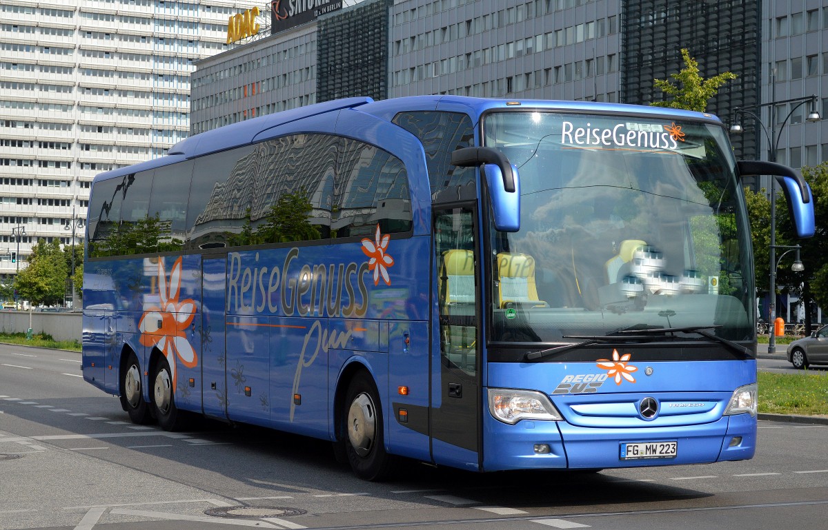 Ob da irgendwo eine Veranstaltung war?, jedenfalls stand der MB TRAVEGO Reisebuss des Wachbataillons des Bundesmisteriums der Verteidigung (Bundeswehr) am Rande von Berlin Marzahn (Springpfuhl) vor einem Einkaufs- und Wohnzentrum in unwirklicher Gegend, 24.01.12