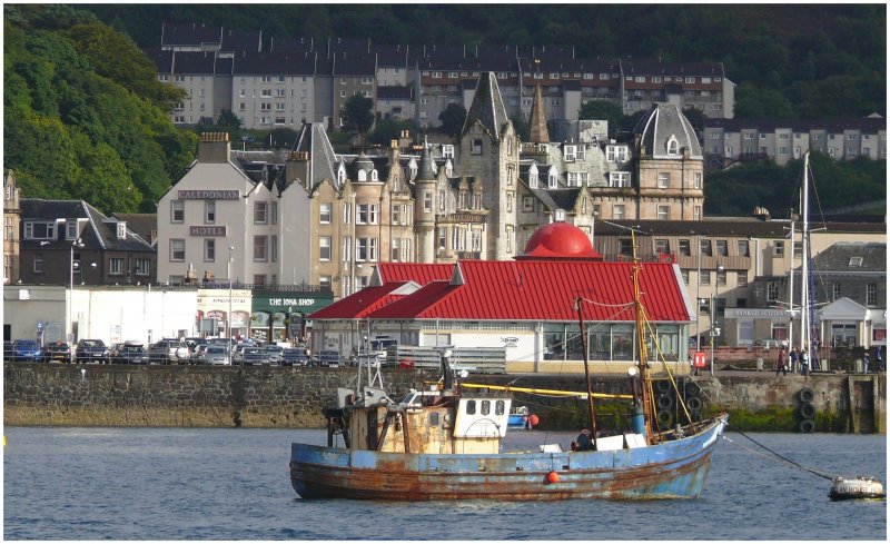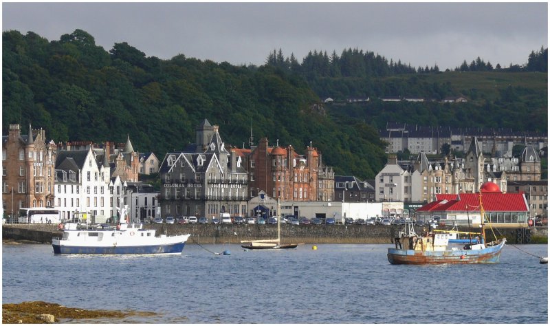 Die Sonne hat ein Loch gefunden über dem Firth of Lorn und die Caledonian Ferry läuft aus nach Mull. (09.08.2008)