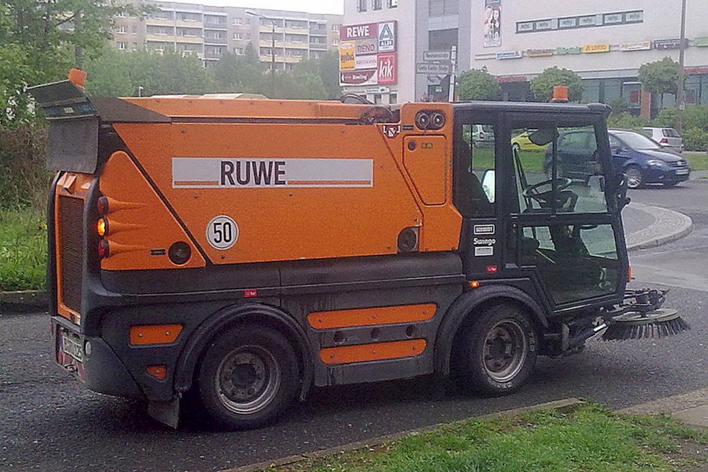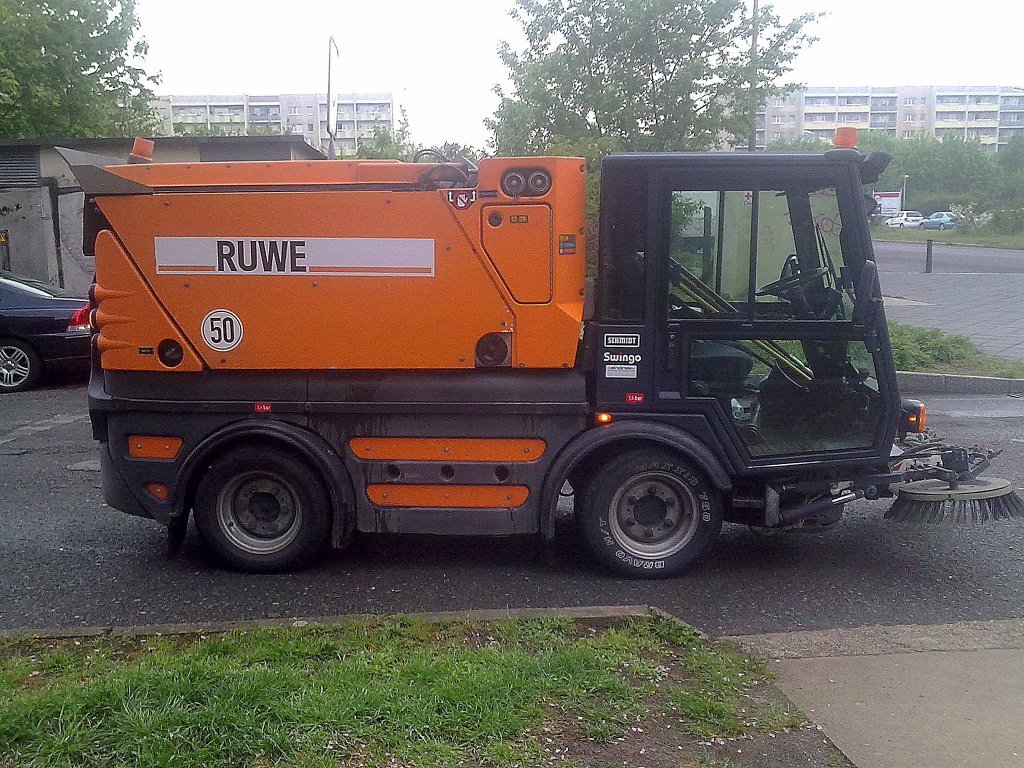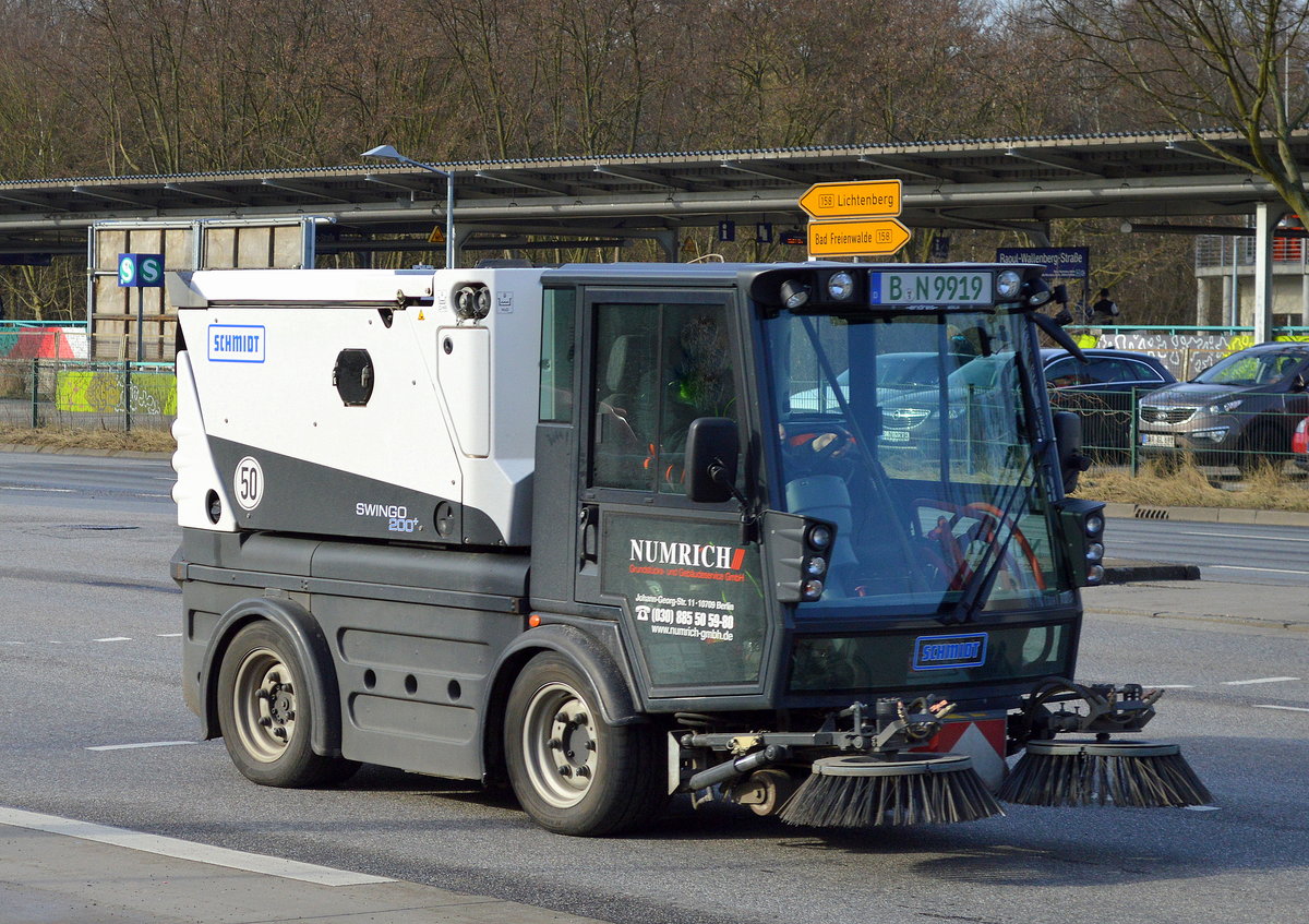 Hier ein Bild wie eine SCHMIDT Swingo Kehrmaschine der Fa. RUWE ihren Auffangbehälter auf einer LKW-Ladefläche entleert, 29.02.12 Berlin-Pankow.