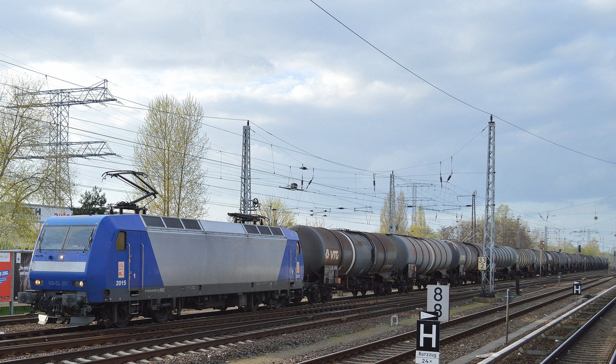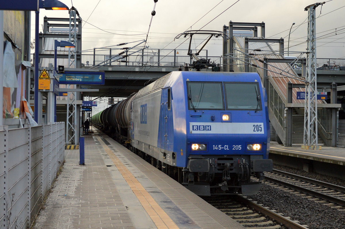 RHC mit der Alpha Trains Mietlok 145-CL 201 (145 097-2) und Kesselwagenzug (leer) Richtung Stendell am 12.11.17 Berlin-Hohenschönhausen.