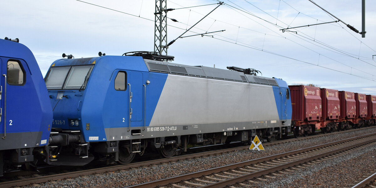 VPS - Verkehrsbetriebe Peine-Salzgitter GmbH, Salzgitter [D] mit der geleasten ATLU Lok "5612/185 514-7" [NVR-Nummer: 91 80 6185 514-7 D-ATLU] und einem Coil-Transportzug am 07.08.25 Höhe S-Bahnhof Dedensen/Gümmer.