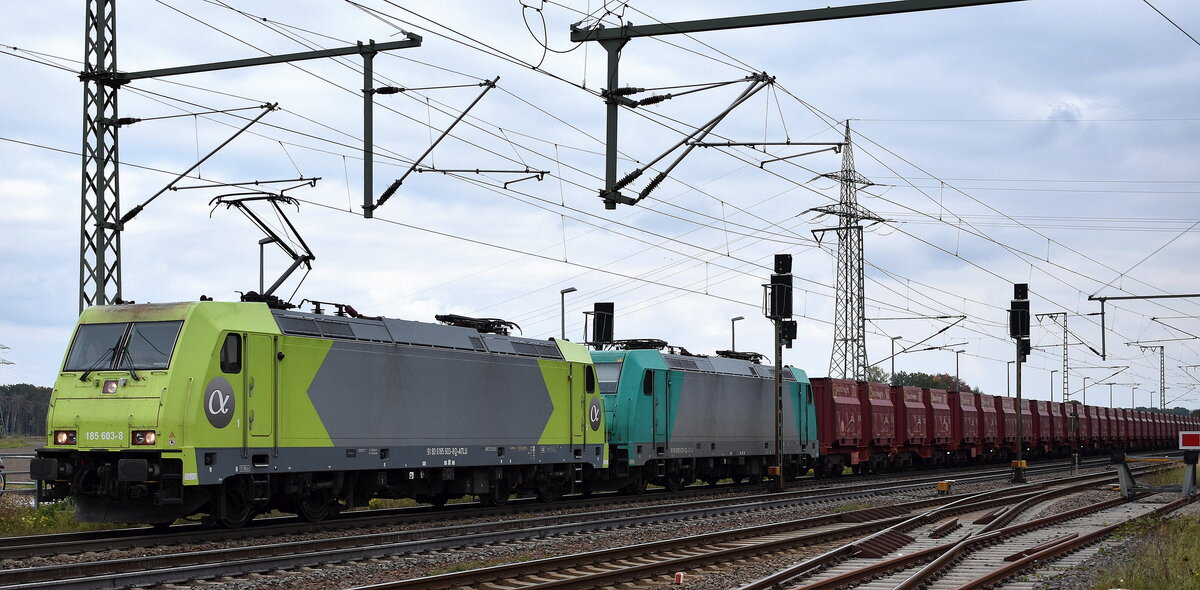 Emons Bahntransporte GmbH, Dresden [D] mit der geleasten ATLU Lok "185 513-9" [NVR-Nummer: 91 80 6185 513-9 D-ATLU] und einem Containerzug am 10.12.25 Höhe Bahnhof Stendal Hbf.