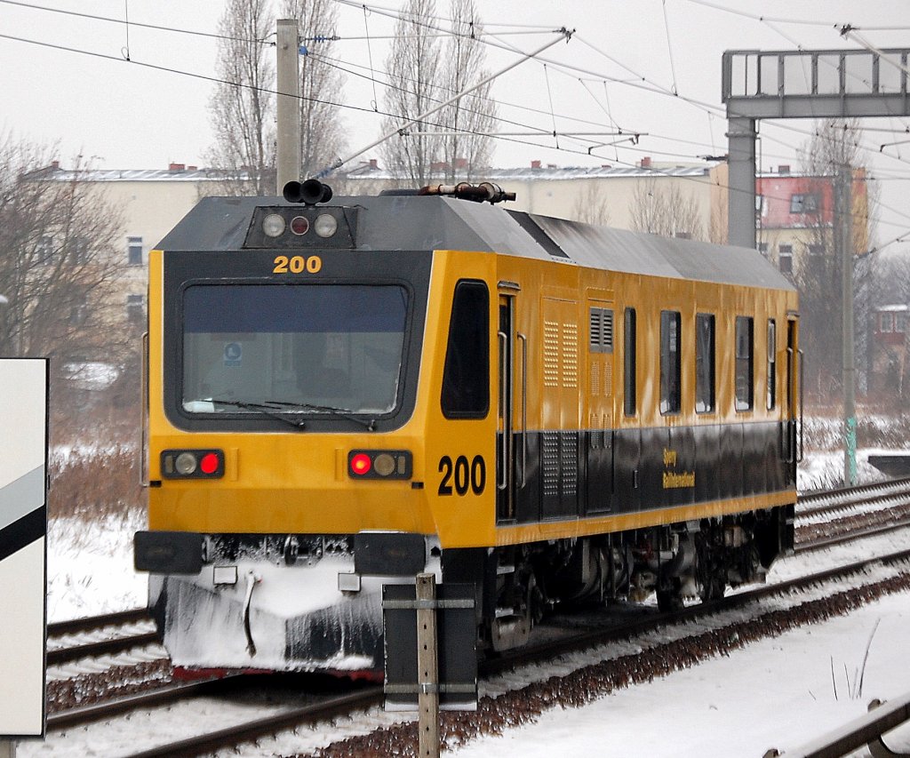 Spezial-Zweiwegefahrzeug zur Ulrtaschallvermessung von Gleisanlagen in dem Fall der DB, ein MB UNIMOG U400 der Berliner Fa. pethoplan GmbH, 13.01.11 Berlin-Beusselstr.