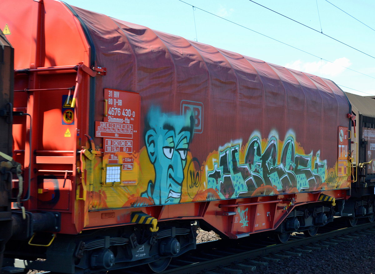 Schiebepanewagen für Coil-Transporte vom Einsteller VTG mit der Nr. 33 RIV 80 D-VTGD 4670 656-4 Shimmns2 am 12.04.16 Bf. Flughafen Berlin-Schönefeld.