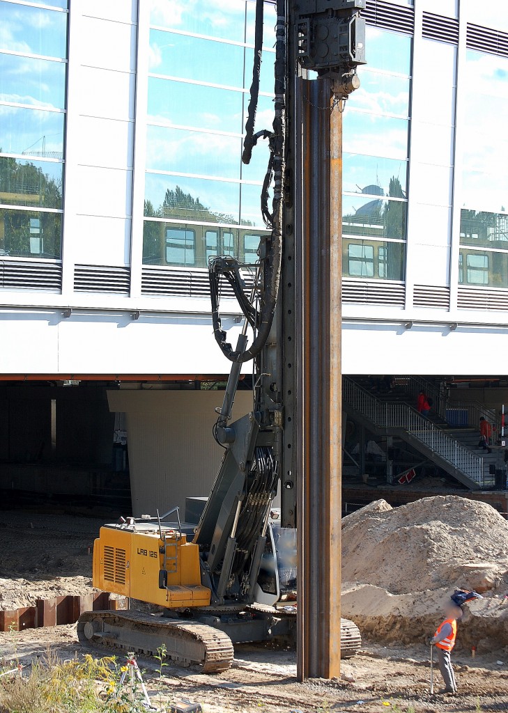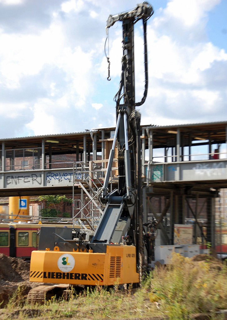 Noch mal etwas näher das Ramm- u. Bohrgerät LIEBHERR LRB 125 am 28.09.13 Großbaustelle Berlin Ostkreuz.