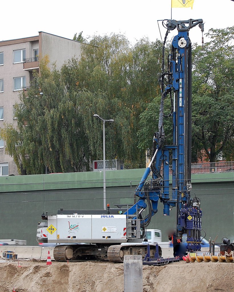 SENNEBOGEN Raupenuntersatz mit DELMAG RH 18 Bohrsystem "ELFI" der Fa. PRB am 03.04.16 Baustelle Berlin Adlershof.