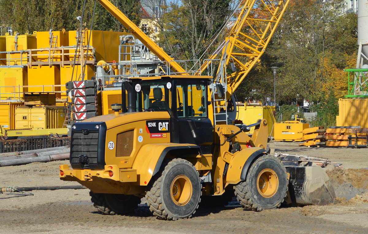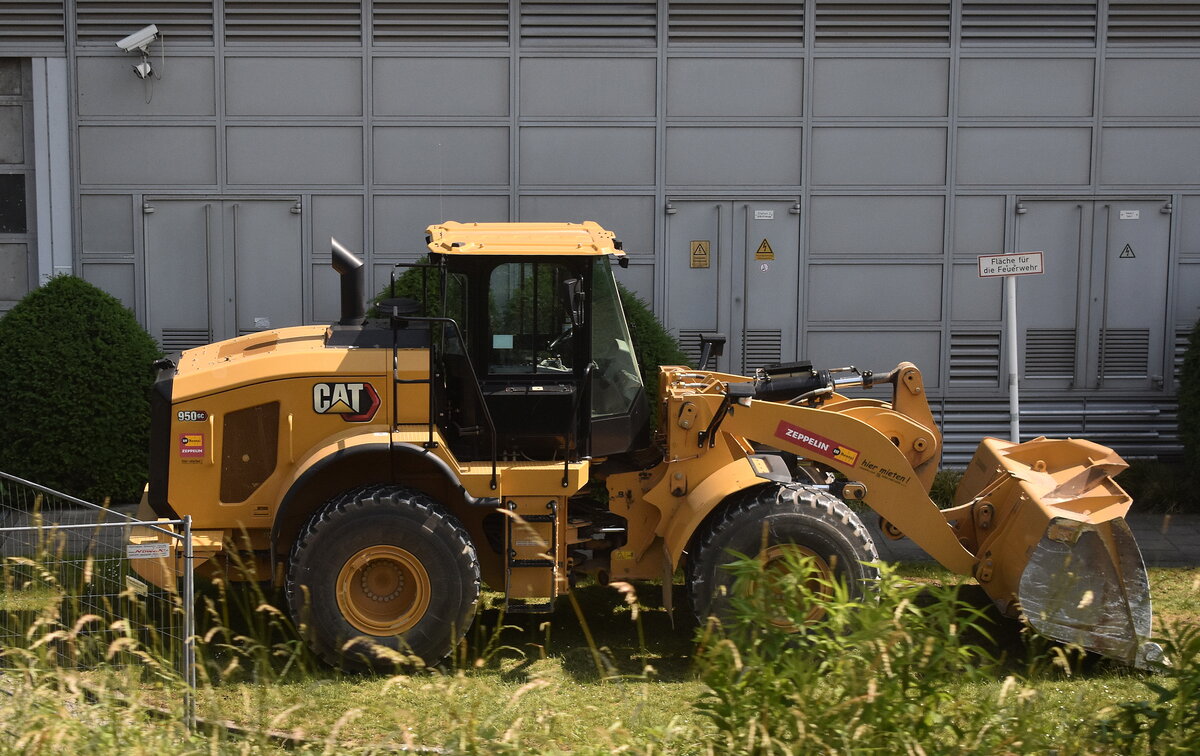 Ein schon etwas älterer CAT Radlader Typ 938 F der Baufirma KEMMER, Sommer 2008 Großbaustelle Berlin Ostkreuz.