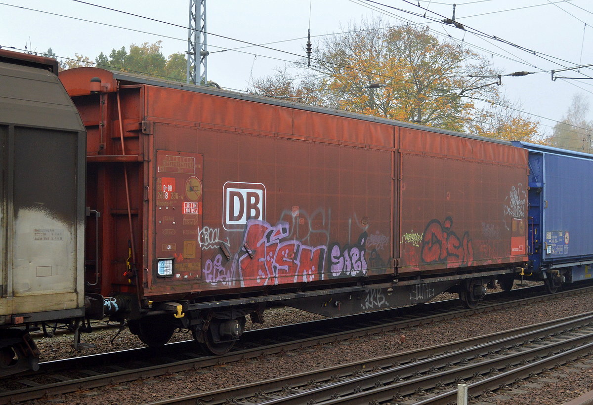 Großräumige Planen-Schiebewandwagen-Einheit der DB mit der Nr. 42 80 D-DB 2926 048-9 Himrrs-tt 326 am 19.10.17 Berlin Hirschgarten.