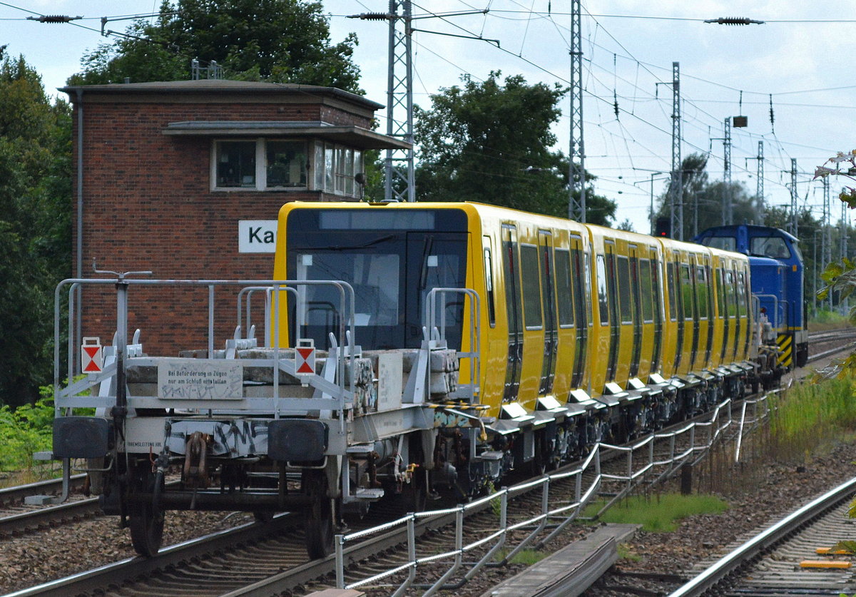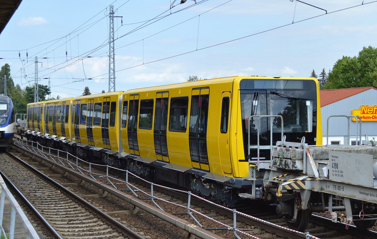 Durch Zufall vom Bahnsteig aus gesehen, ein Schwertransport eines U-Bahn Triebwagen/Teilsegment Nr.? auf einer Tiefladebrücke, 05.02.13 S-Bhf. Berlin-Jungfernheide.