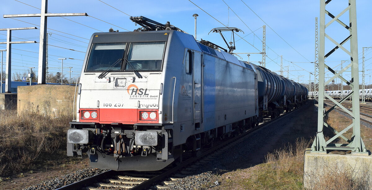 HSL Logistik GmbH, Hamburg [D] mit ihrer "187 538" [NVR-Nummer: 91 80 6187 538-4 D-HSL] am 18.12.25 Höhe Bahnhof Rodleben.