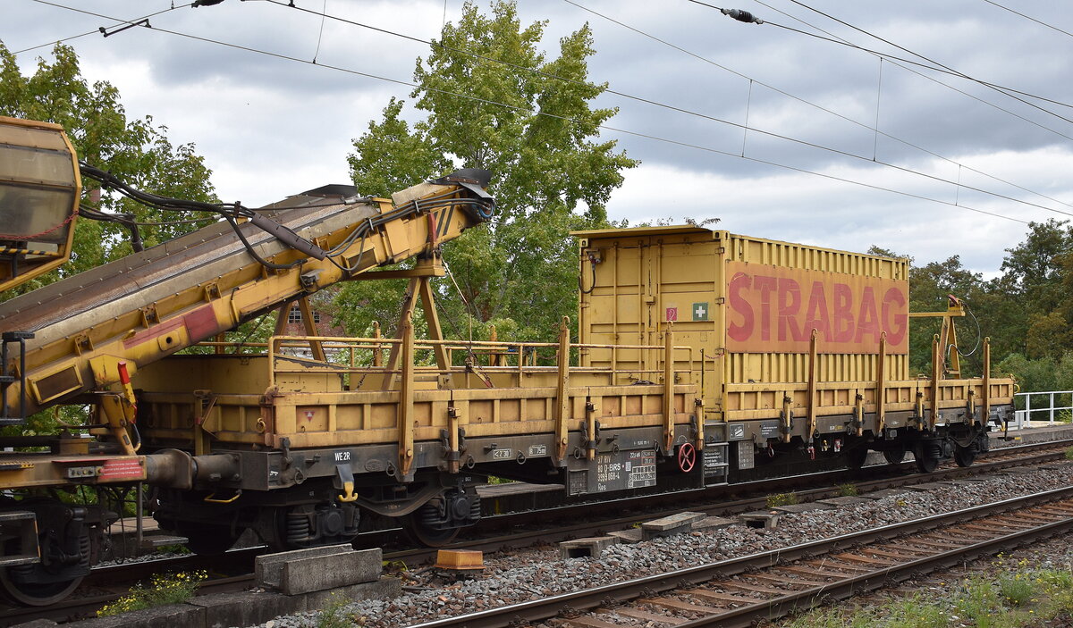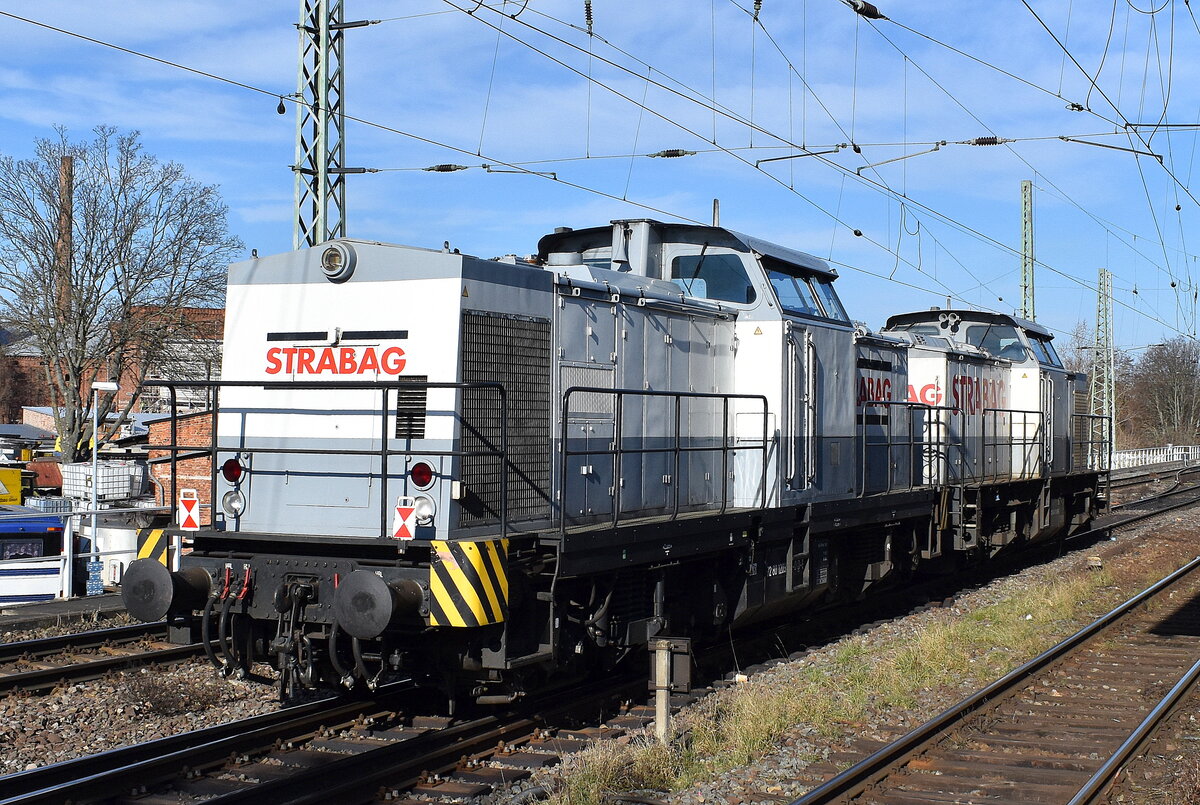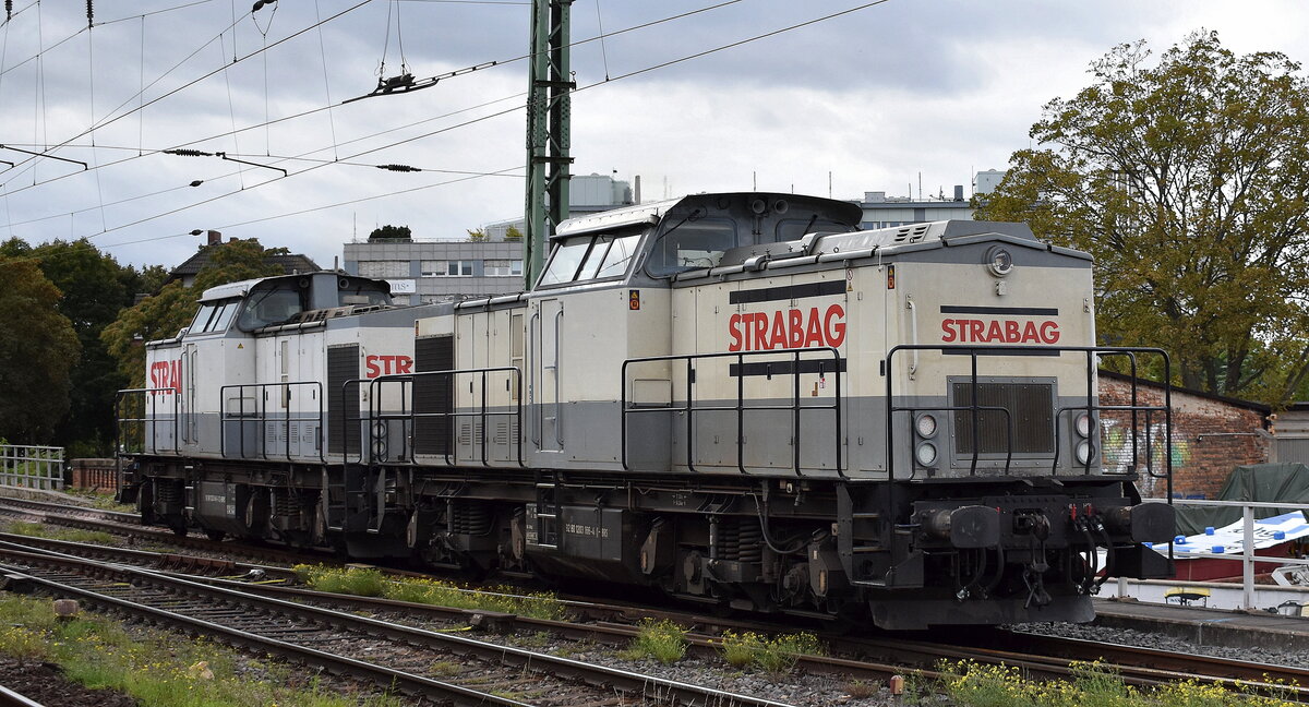 STRABAG BMTI Rail Service GmbH mit ihre beiden V 100 Loks "203 841-2" [NVR-Nummer: 92 80 1203 841-2 D-BRS] + "203 166-4" [NVR-Nummer: 92 80 1203 166-4 D-BRS] am 18.09.25 Höhe Bahnhof Magdeburg-Neustadt.