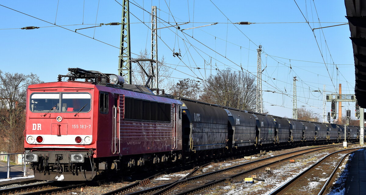 TRIANGULA Logistik GmbH, Gelenau/Erzgebirge [D] mit der geleasten northrail Vectron Dula Lok "248 018" [NVR-Nummer: 90 80 2248 018-4 D-NRAIL] und einem Ganzzug Schüttgutwagen mit Schwenkdach am 09.03.26 Höhe Bahnhof Saarmund.