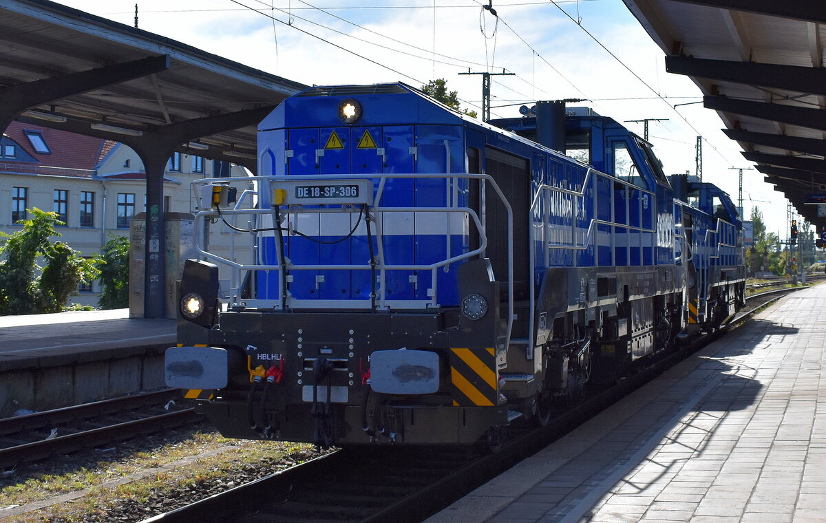 Spitzke Logistik GmbH mit ihrer nagelneu ausgelieferten vossloh DE 18 Loks "DE 18-SP-306" [NVR-Nummer: 92 80 4185 306-2 D-SLG] am 01.10.25 Höhe S-Bahnhof Berlin Springpfuhl.