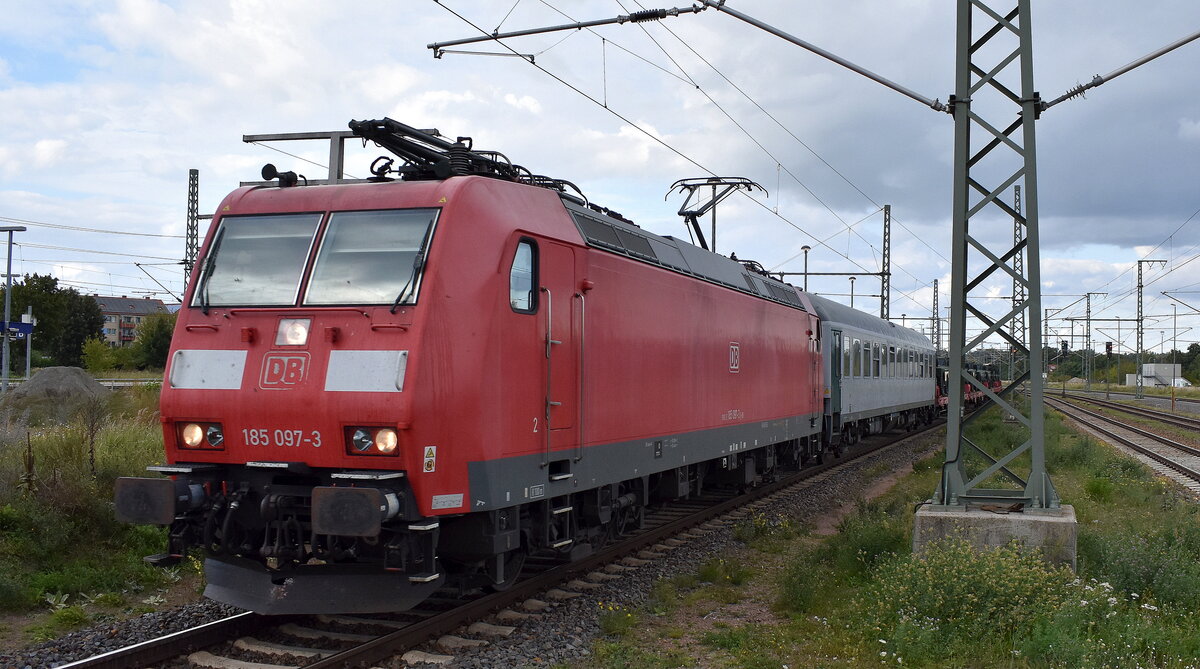 DB Cargo AG, Mainz [D] mit ihrer "187 137" [NVR-Nummer: 91 80 6187 137-5 D-DB] und einem Militärtransportzug mit US-amerikanischen Militärfahrzeugen am 18.09.25 Durchfahrt Bahnhof Magdeburg-Neustadt.