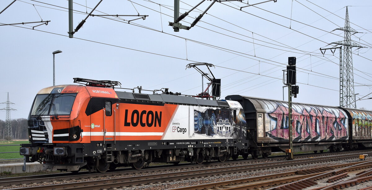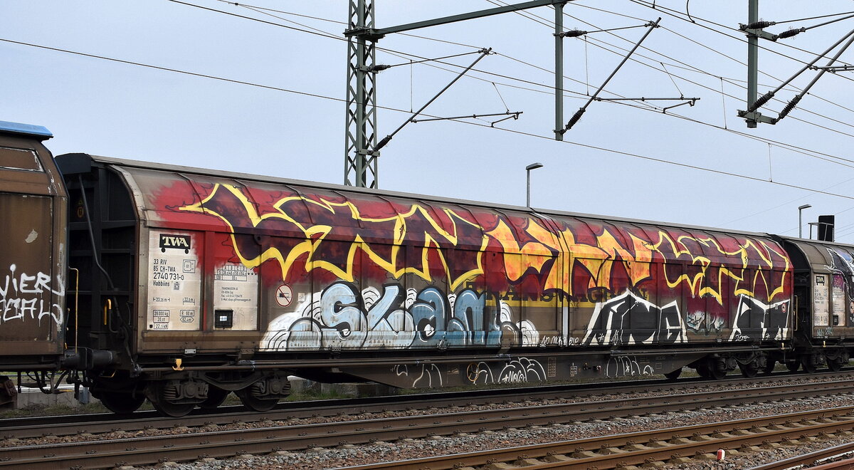 ITL - Eisenbahngesellschaft mbH, Dresden [D] mit der jetzt silbergrau geleasten Akiem Lok "185 649-1" [NVR-Nummer: 91 80 6185 649-1 D-ITL] und einem Ganzzug Schiebewandwagen am 03.04.25 Höhe Bahnhof Saarmund, Viele Grüße an den Tf. !!!