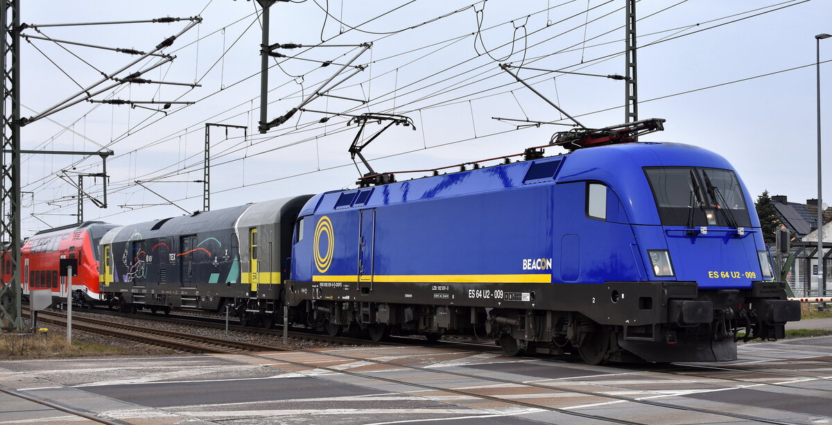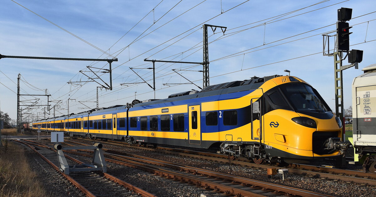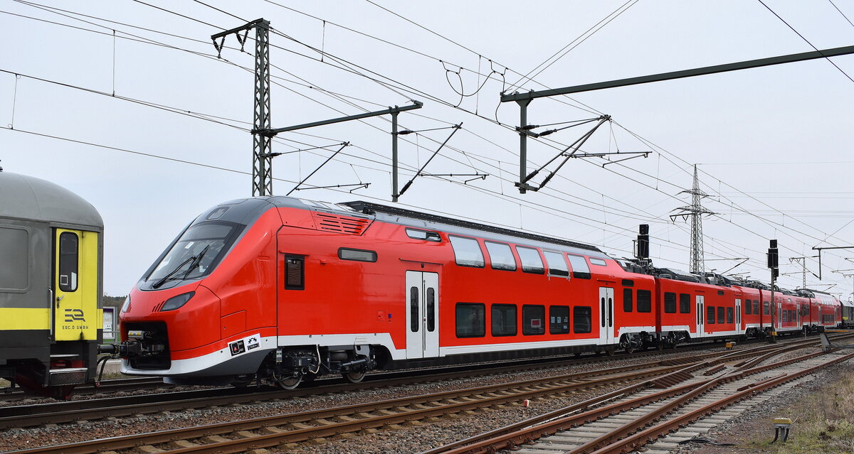 DB InfraGO AG, Frankfurt (Main) mit ihrer "203 314-0" [NVR-Nummer: 92 80 1203 314-0 D-DBMP] überführt zwei DB Fernverkehr IC- Steuerwagen, es handelte sich um (D-DB 51 80 80-95 016-6 Bimmdzf 297.0 + D-DB 51 80 80-95 003-4 Bimmdzf 297.0) mit Schutzwagen bei der Durchfahrt Bahnhof Stendal Hbf. am 20.06.25