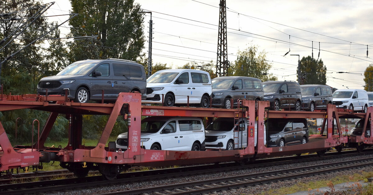 Wageneinheit für den Kfz-Transport vom Einsteller Mosolf Automotive Railway GmbH inzwischen wie eine ganze Reihe anderer gleichartigen Wagen mit neuer deutscher Registrierung (ehemals belgische Registrierung) mit der Nr. 27 TEN-RIV 80 D-MOS 4363 813-1 Laaers am 01.03.16 Berlin-Hirschgarten.