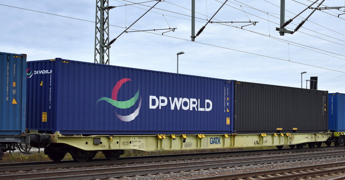 Gelenk-Taschenwagen vom Einsteller VTG Schweiz GmbH mit der Nr. 37 TEN GE 80 D-VTGCH 4956 531-0 Sdggmrss in einem Ganzzug (leer) am 24.02.26 Höhe Bahnhof Rodleben.