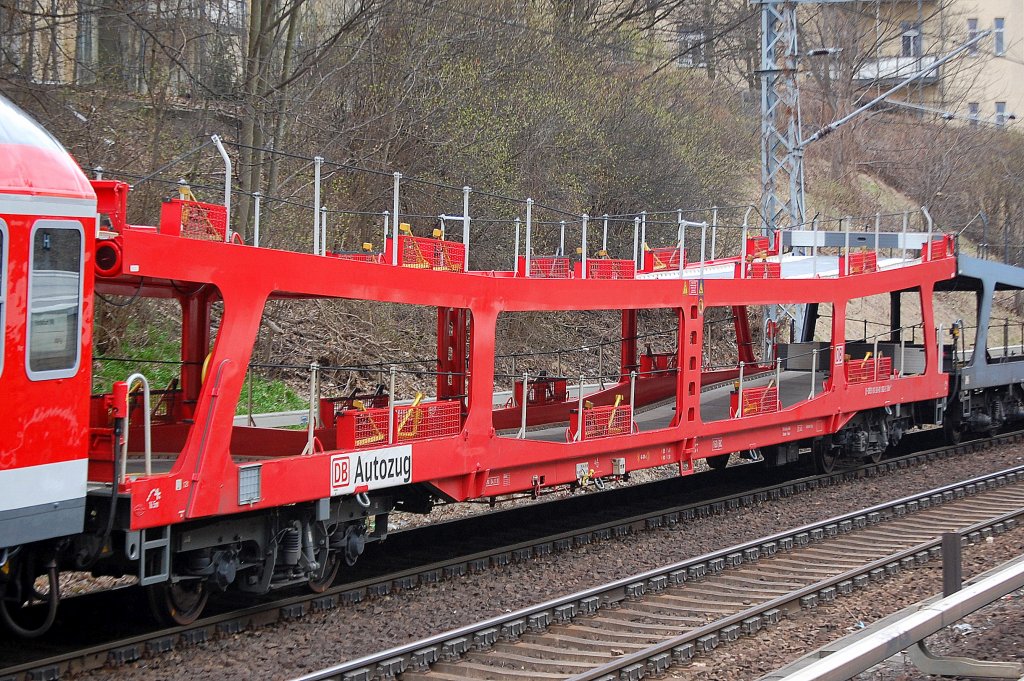 Hier noch in der älteren blauen Farbgebung, ein DB Doppelstockwagen für PKW Transporte der Bauart DDm 915 in einem PbZ in Berlin am 31.03.11 Berlin Prenzlauer Allee.