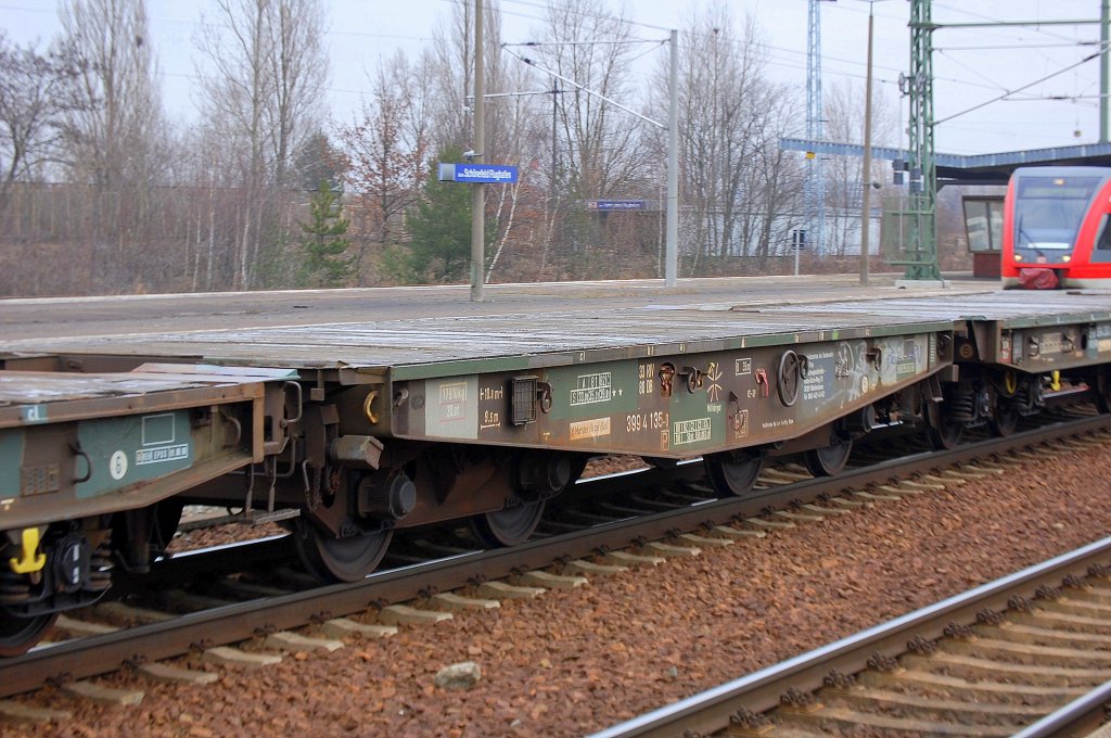 DB Drehgestell-Flachwagen für den Holztransport mit der Nr. 31 RIV 80 D-DB 3525 129-3 Roos 639 am 23.05.13 Berlin-Karow.