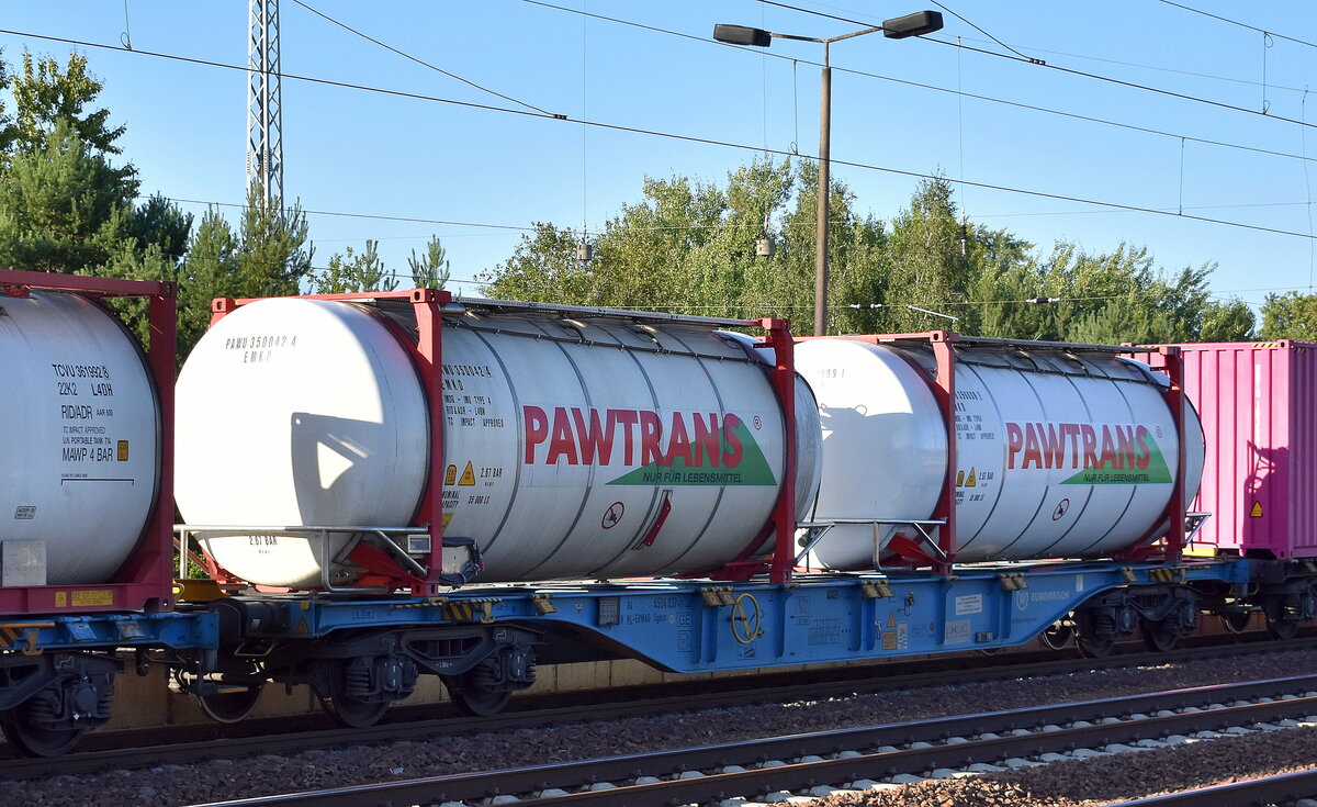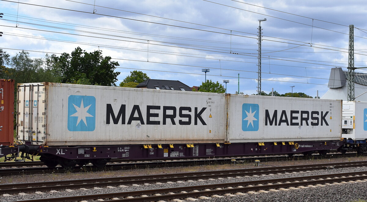 Doppeltaschenwageneinheit aus den Niederlanden eingestellt mit der Nr. 31 TEN-RIV 84 NL-RN 4955 849-9 Sdggmrs 717(AAE S145), 16.02.11 Bhf. Flughafen Berlin-Schönefeld.