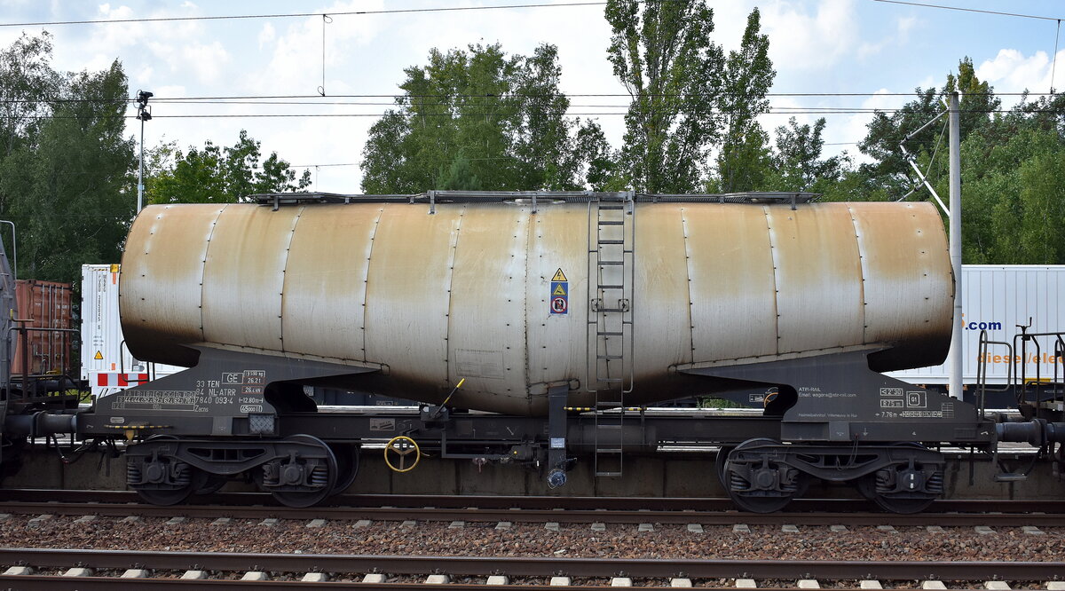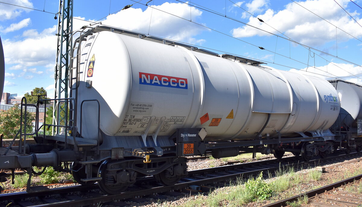 Kesselwagen vom Einsteller BASF SE mit Zulassung in den Niederlanden mit der Nr. 37 TEN-RIV 84 NL-BASF 7931 323-1 Zacens Bf.:Ludwigshafen/Rhein(BASF), 05.06.13 Berlin-Blankenburg.