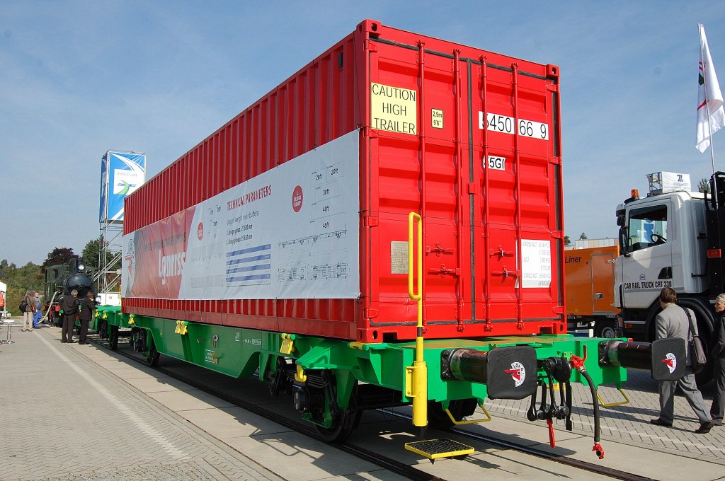Interessante zweiachsige Containertragwagen aus der Slowakei, im Bild der Wagen mit der Nr. 21 RIV 56 SK-ZSSKC 4426 142-6 Lgs am 31.05.17 Berlin-Hohenschönhausen.